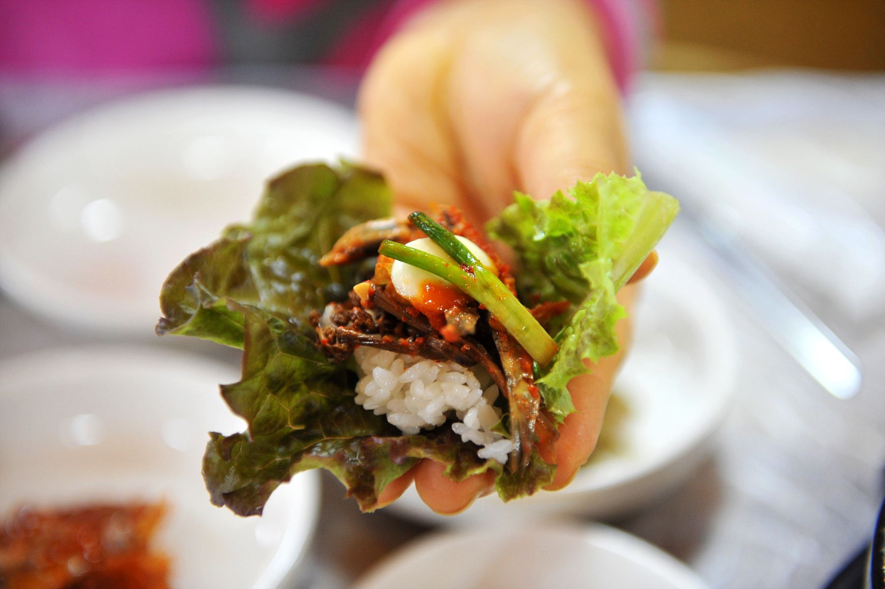 신선한 멸치로 만들어 비린내 없이 부드럽고 고소하며 쫄깃한  멸치쌈밥은