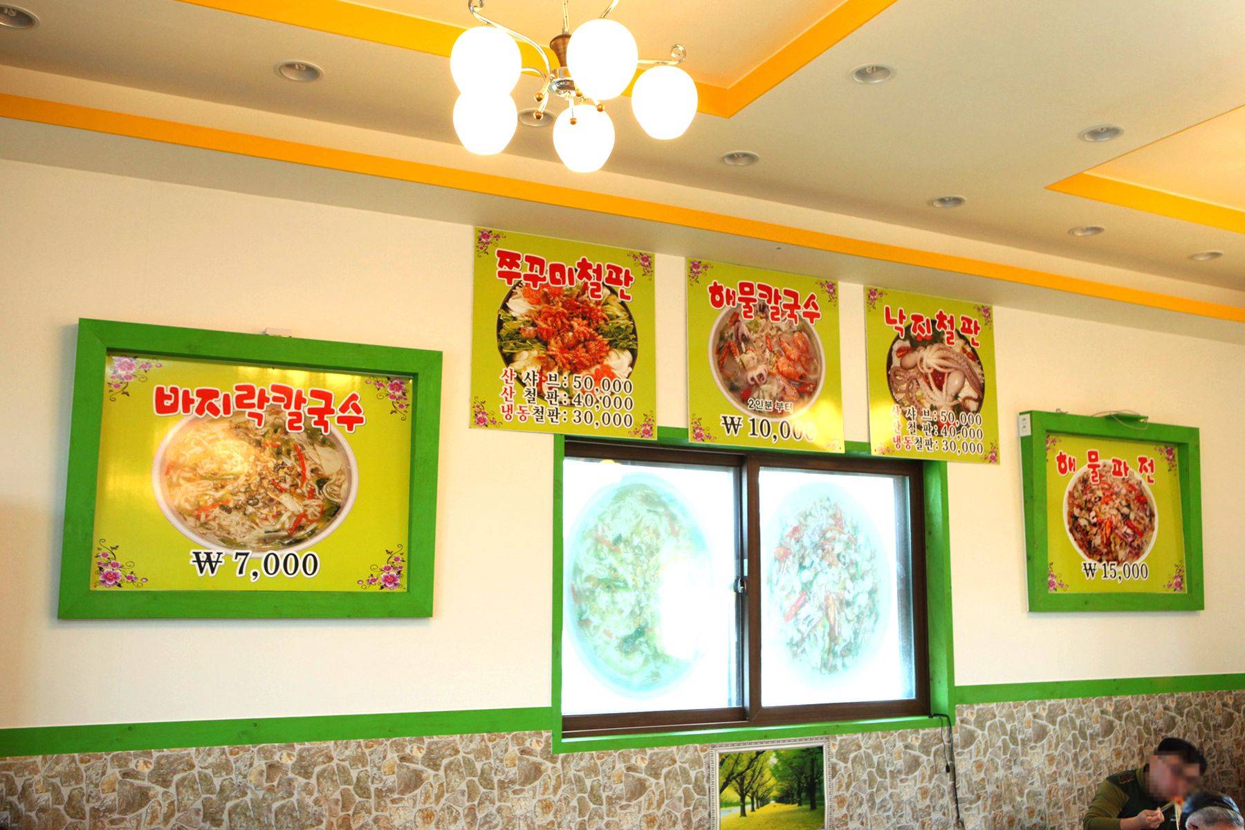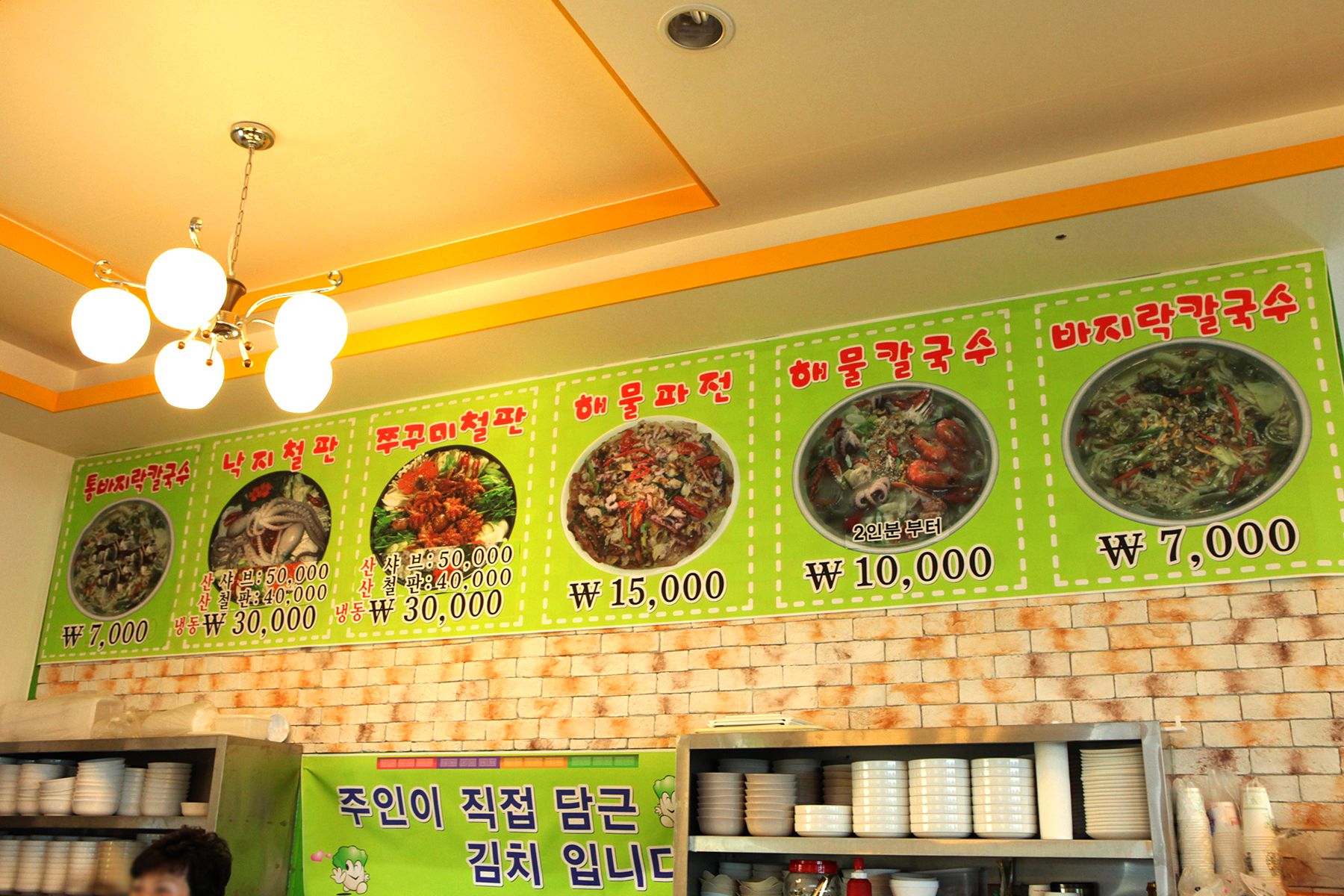 칼국수종류도 다양할뿐만아니라 낙지,쭈꾸미철판, 해물파전등 다양한 메뉴가 있습니다.
