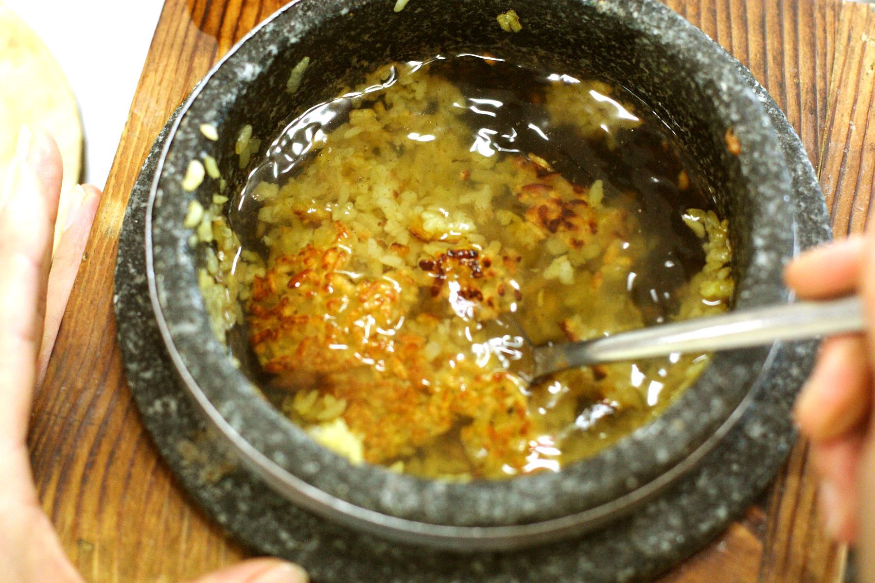 갓 지은 돌솥밥을 적당히 덜어내고, 뜨거운 물을 부어 누룽지를 만들어 먹는 맛은 또다른 즐거움을 선물합니다.
