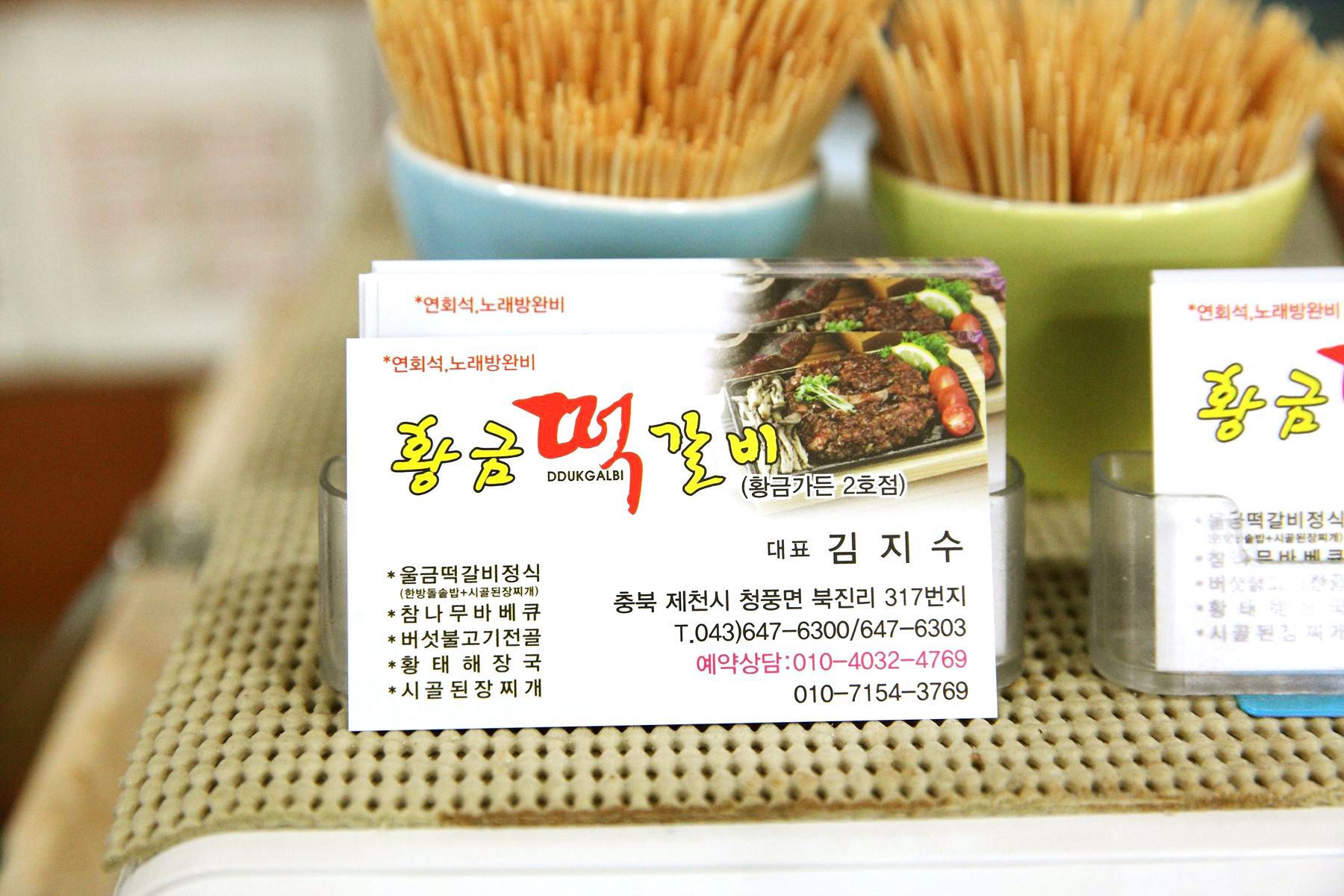 청풍황금가든(황금떡갈비)에는 떡갈비정식과 버섯불고기전골을 전문으로 하고있으며,