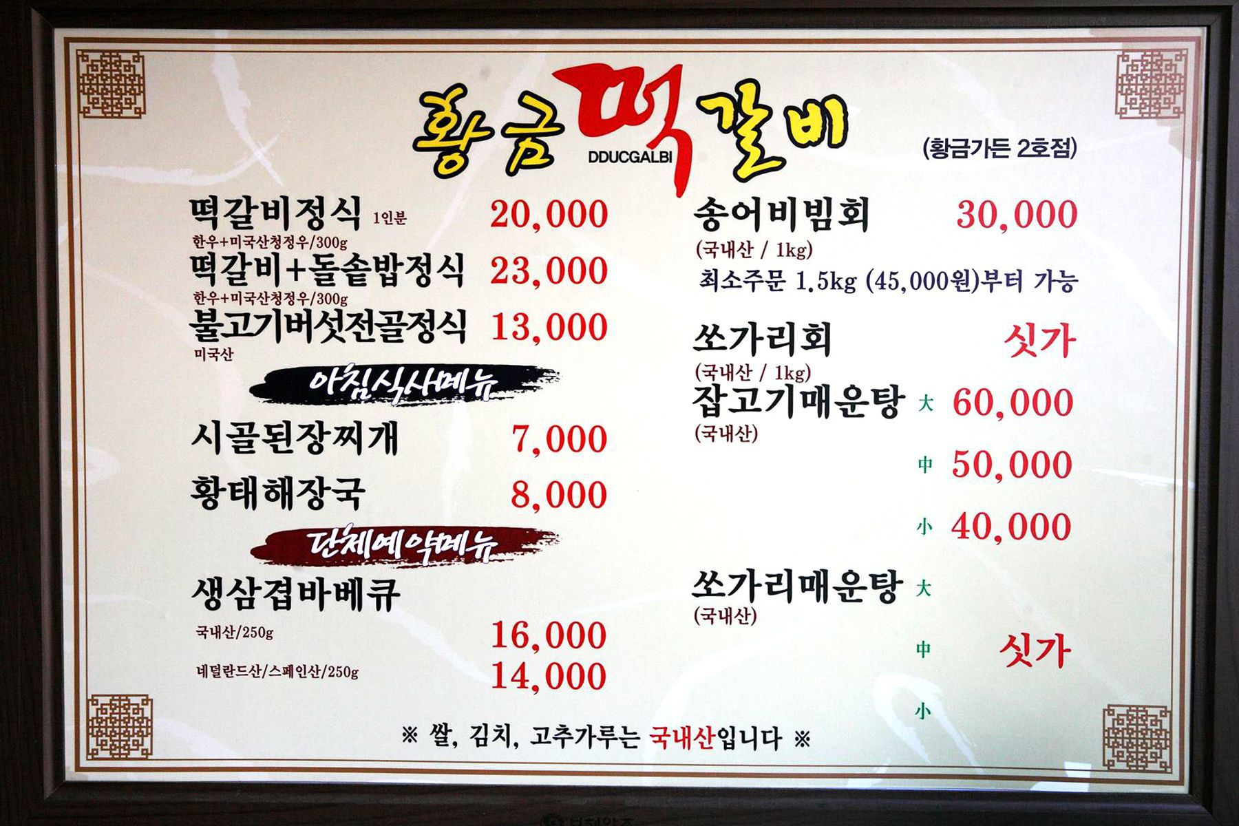 자 그럼, 떡갈비 맛집 청풍황금가든(황금떡갈비)의 다양한 메뉴를 살펴볼까요?
