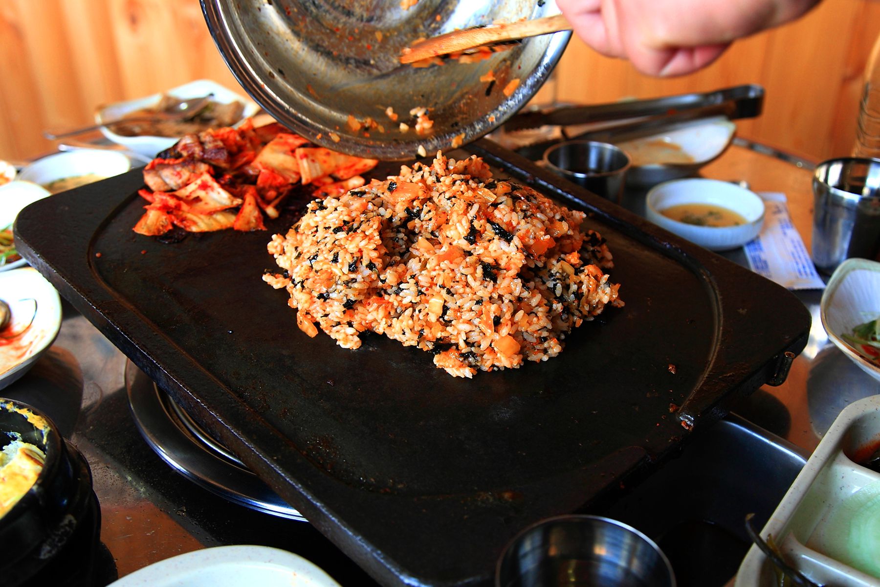 김치랑 갖은 재료 넣고 볶는 볶음밥은 맛의 대미를 장식합니다.