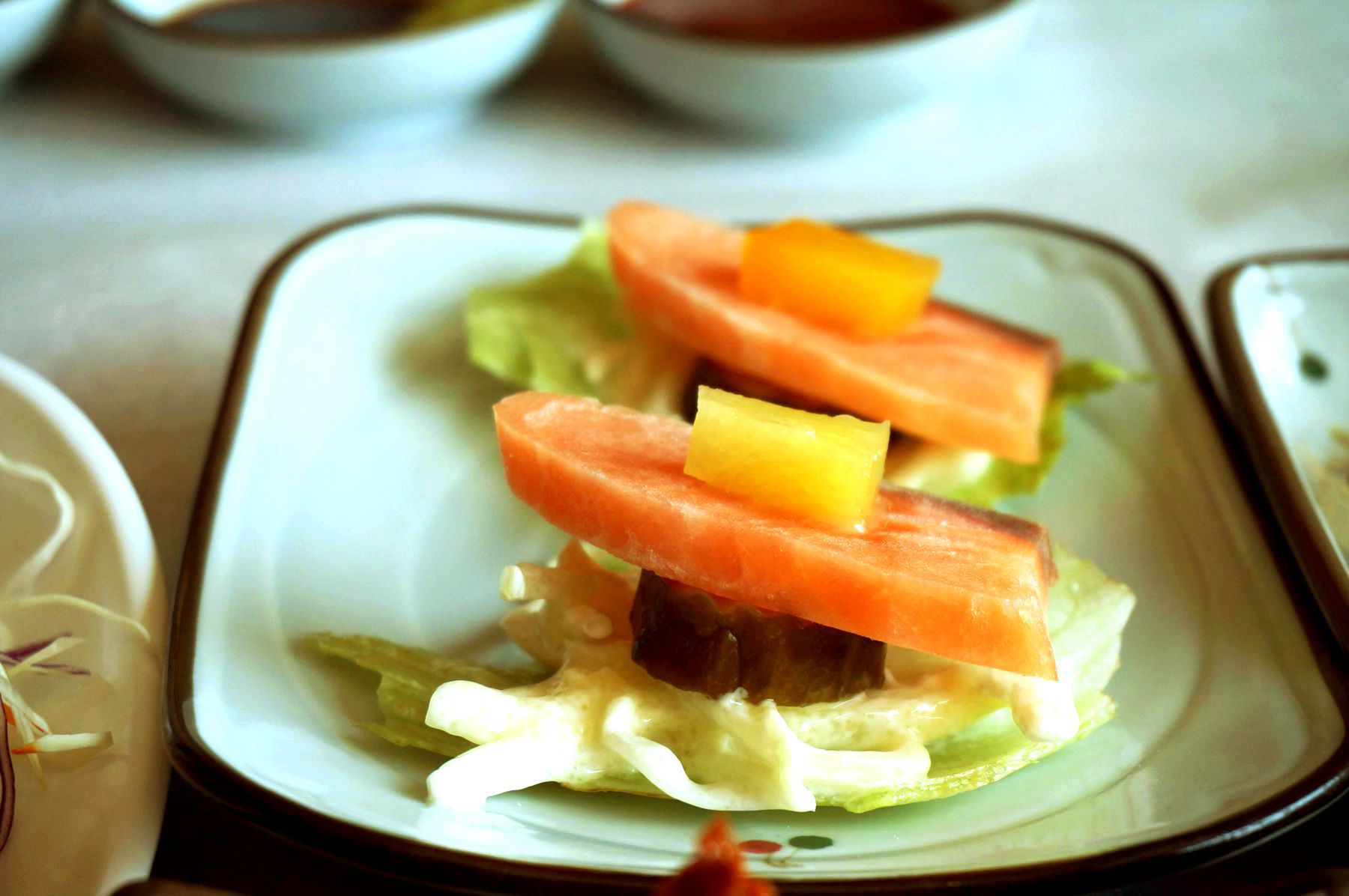 크레미마요, 메추리알장조림, 유자청이 뿌려진 장마, 미역국, 가자미찜, 찌지미, 소라초회