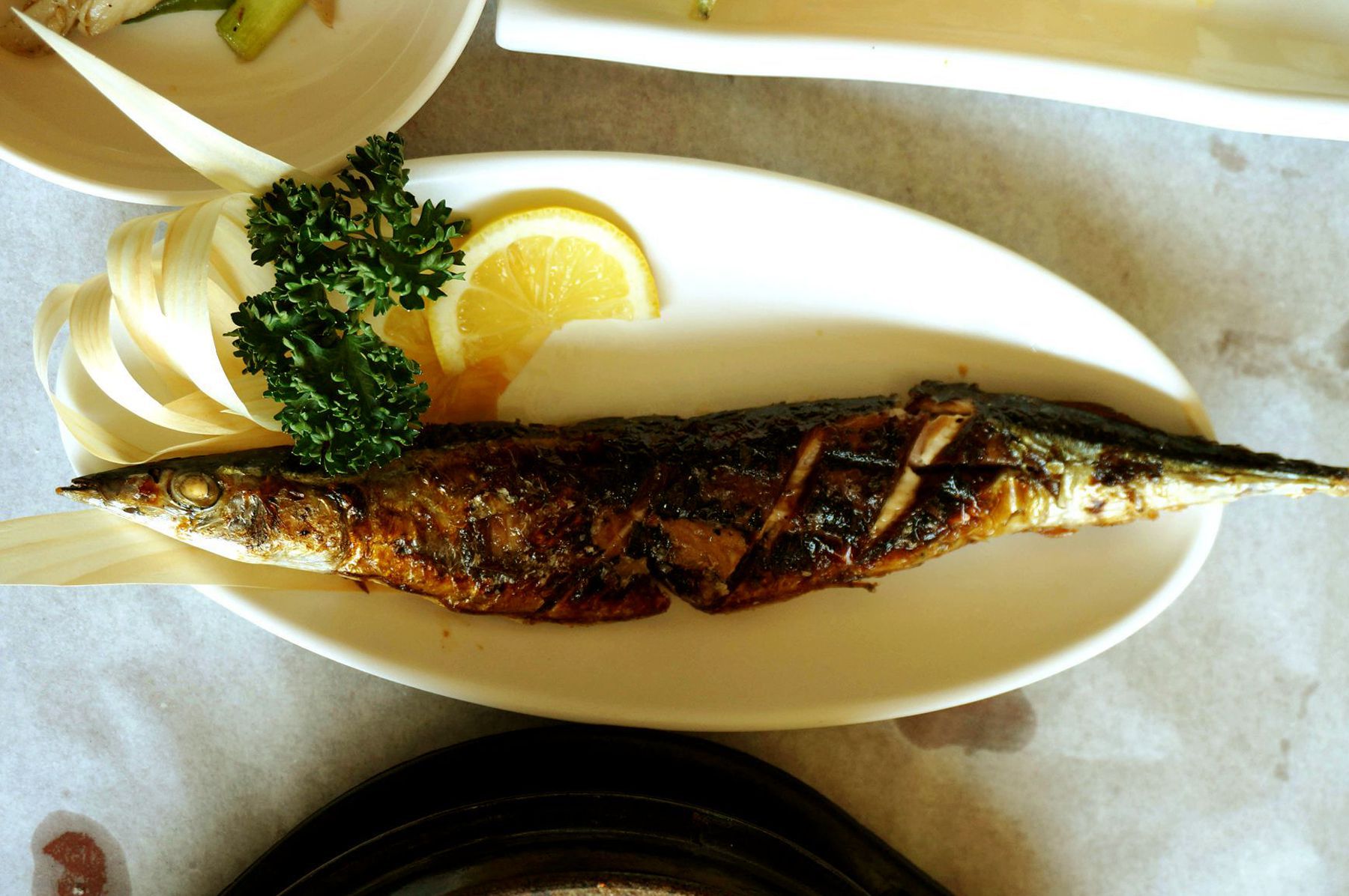감자버터구이, 새송이구이, 꽁치구이, 고구마와새우튀김,셀프초밥, 한치모밀국수