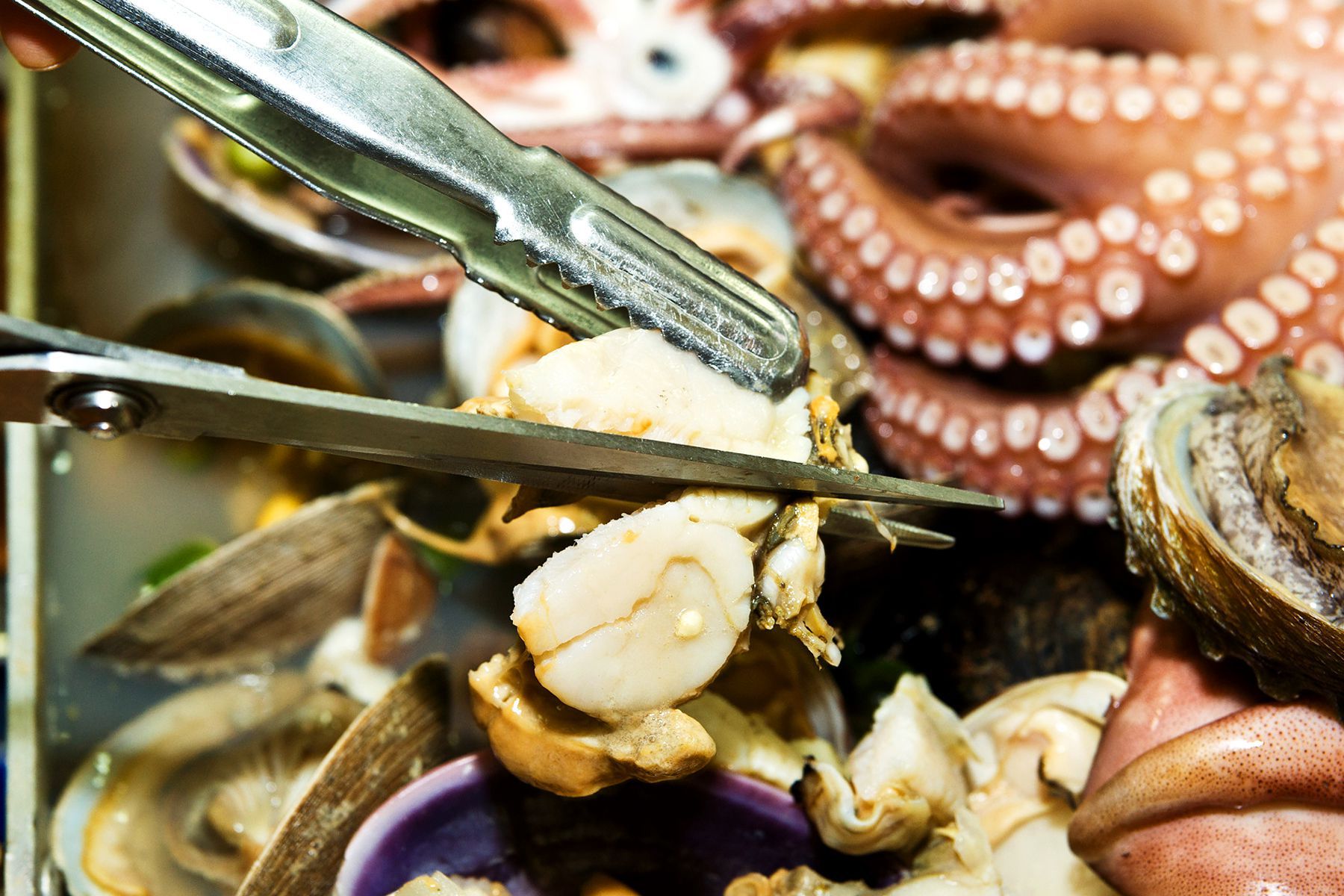 주재료는 대합,가리미,키조개,참조개,돌조개,명주,웅피,생합,민들,바지락,홍합,석화(겨울),전복,문어,흑고동,꽃게,새우,오징어 등등