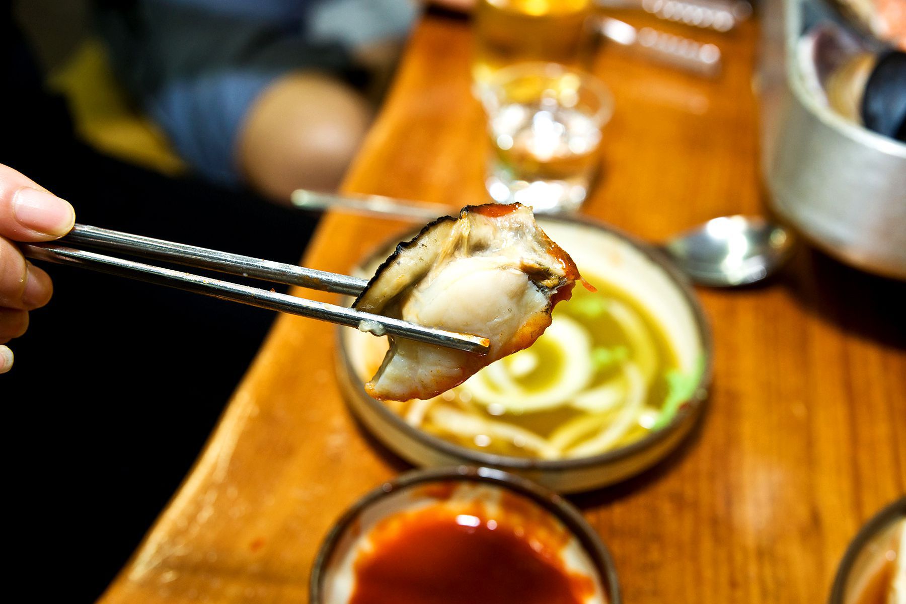 혹시나 해산물 좋아하지 않는 분들은 이렇게 초장에 찍어드시면 부담없이 해산물을 즐길 수 있답니다.