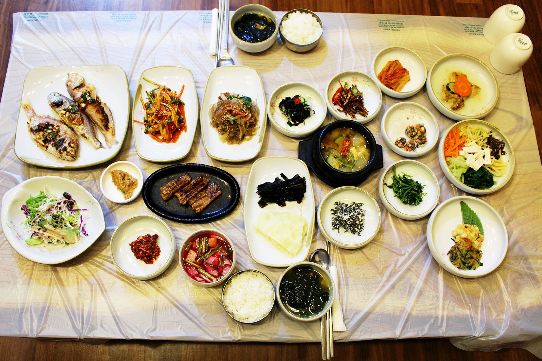 잡채, 육회, 전, 골뱅이무침, 생선회, 생선조림, 갈비찜, 샐러드, 생선구이, 간장게장, 통영나물, 쌈 등