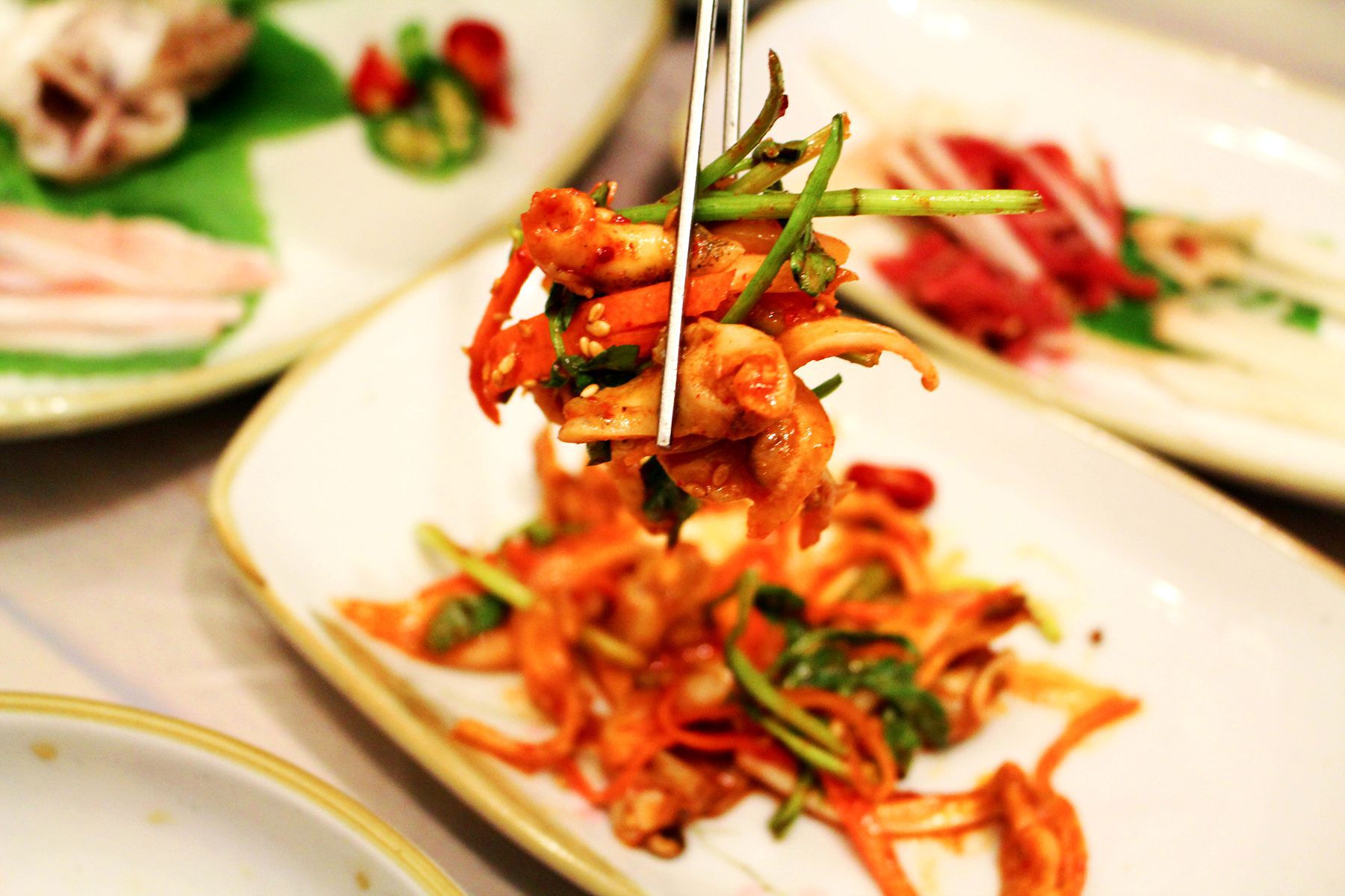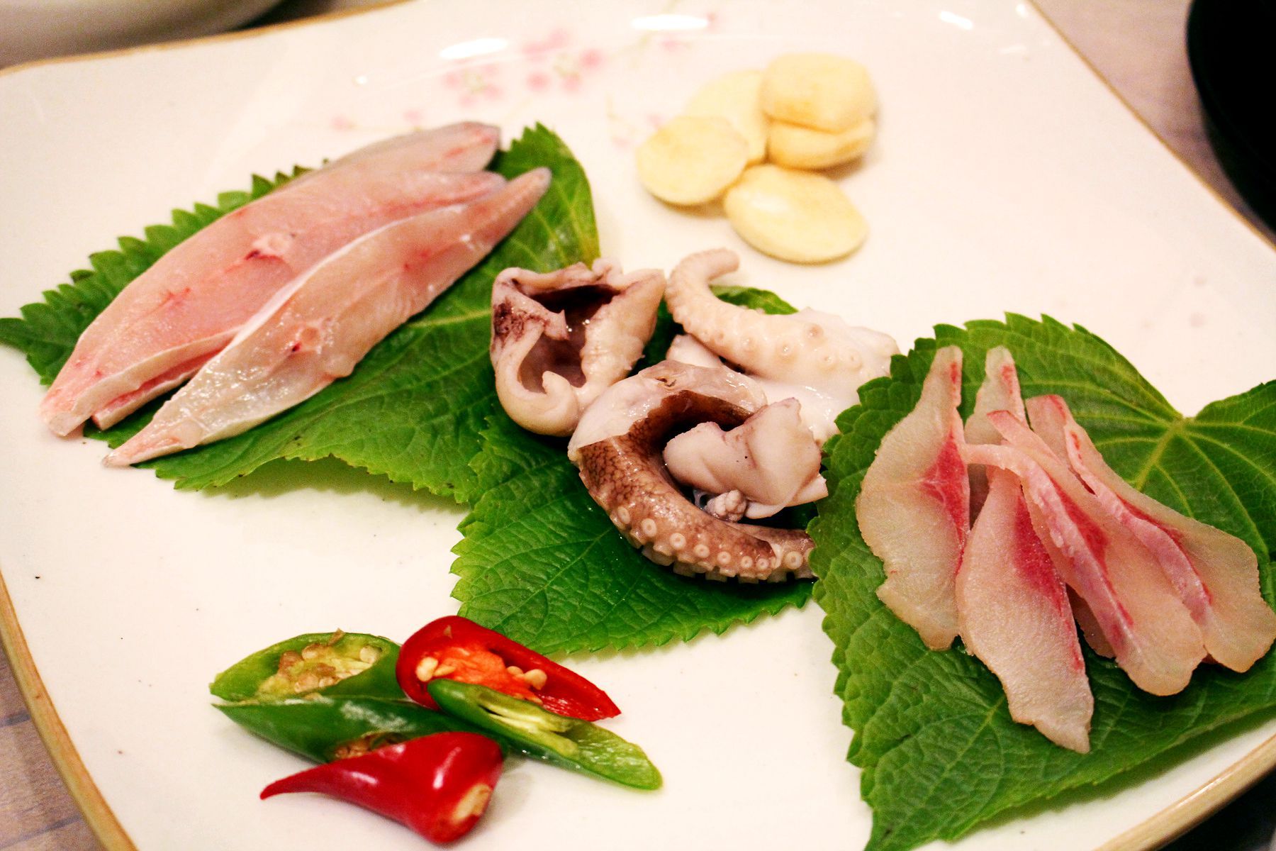 잡채, 전, 쌈, 수육, 골뱅이무침, 생선조림, 탕수육, 샐러드, 생선구이, 통영나물, 간장게장, 생선회 등