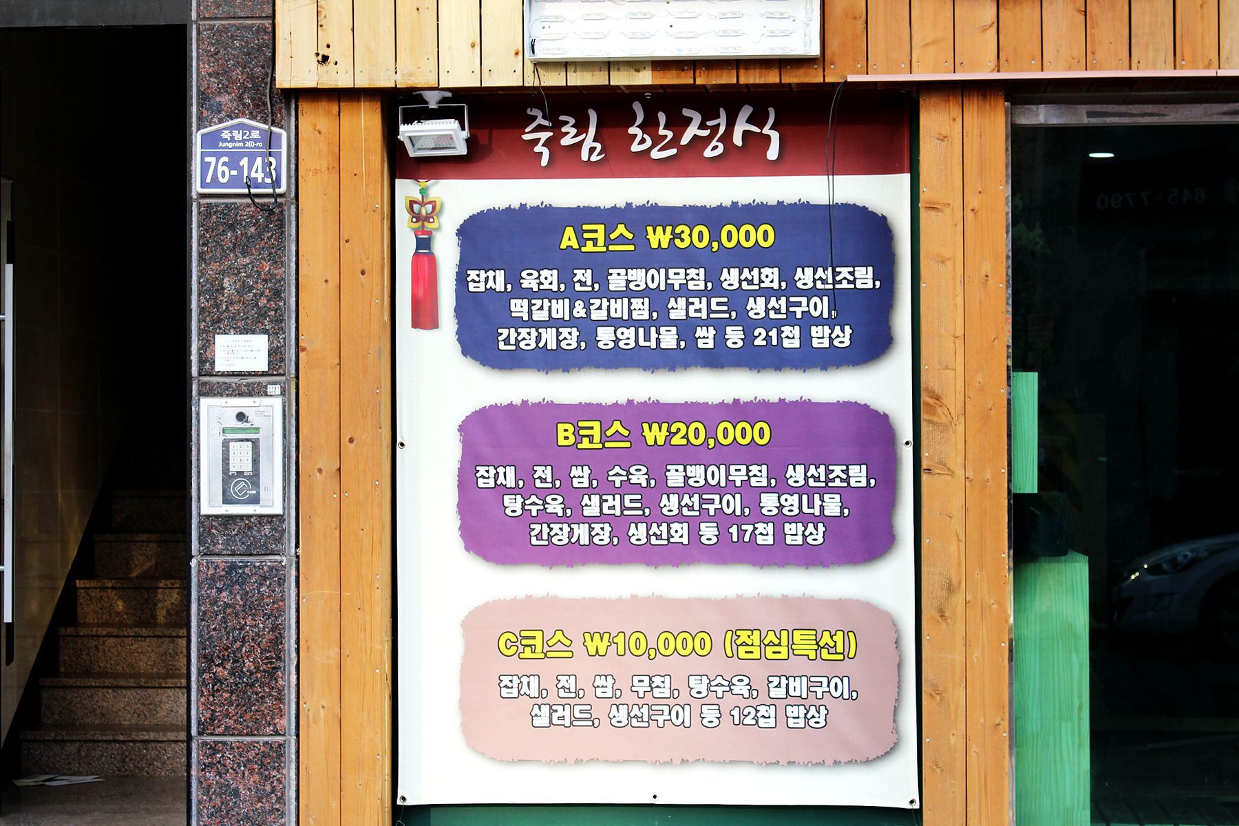 죽림한정식은 모두 A,B,C 세가지 나뉩니다.