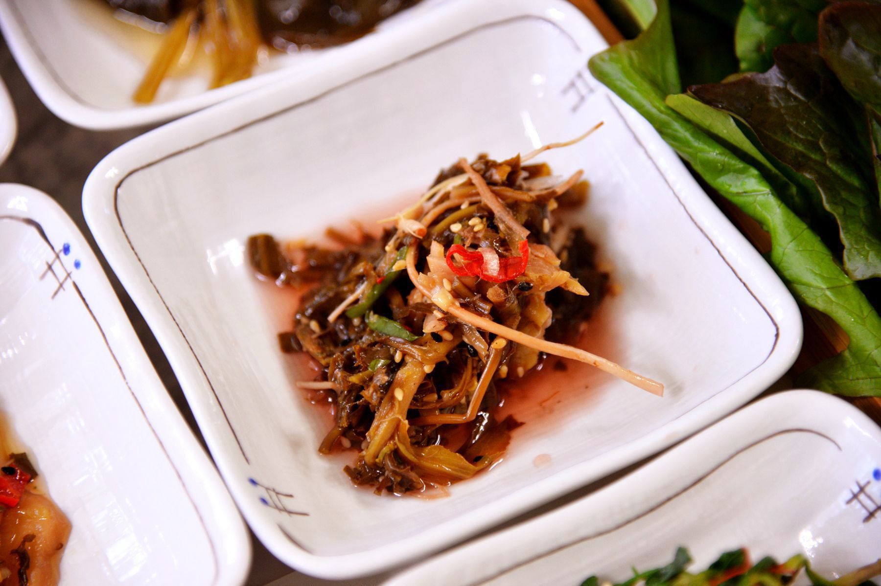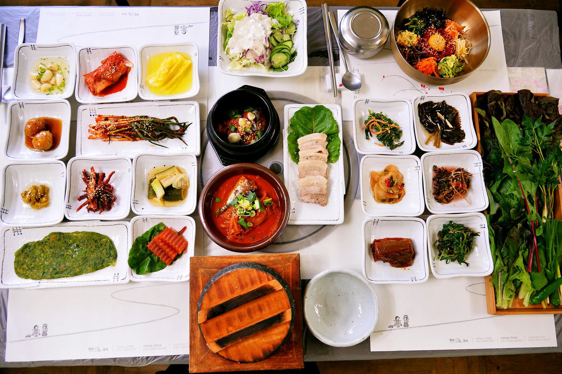 12가지 기본반찬으로는 냉이장아찌,매실장아찌,알타리장아찌,곰취,오이피클장아찌,3년묵은돌산갓김치,묵은지,전라도식 겉절이,당근양갱,전,갈치속젓갈,조림류가 나오면