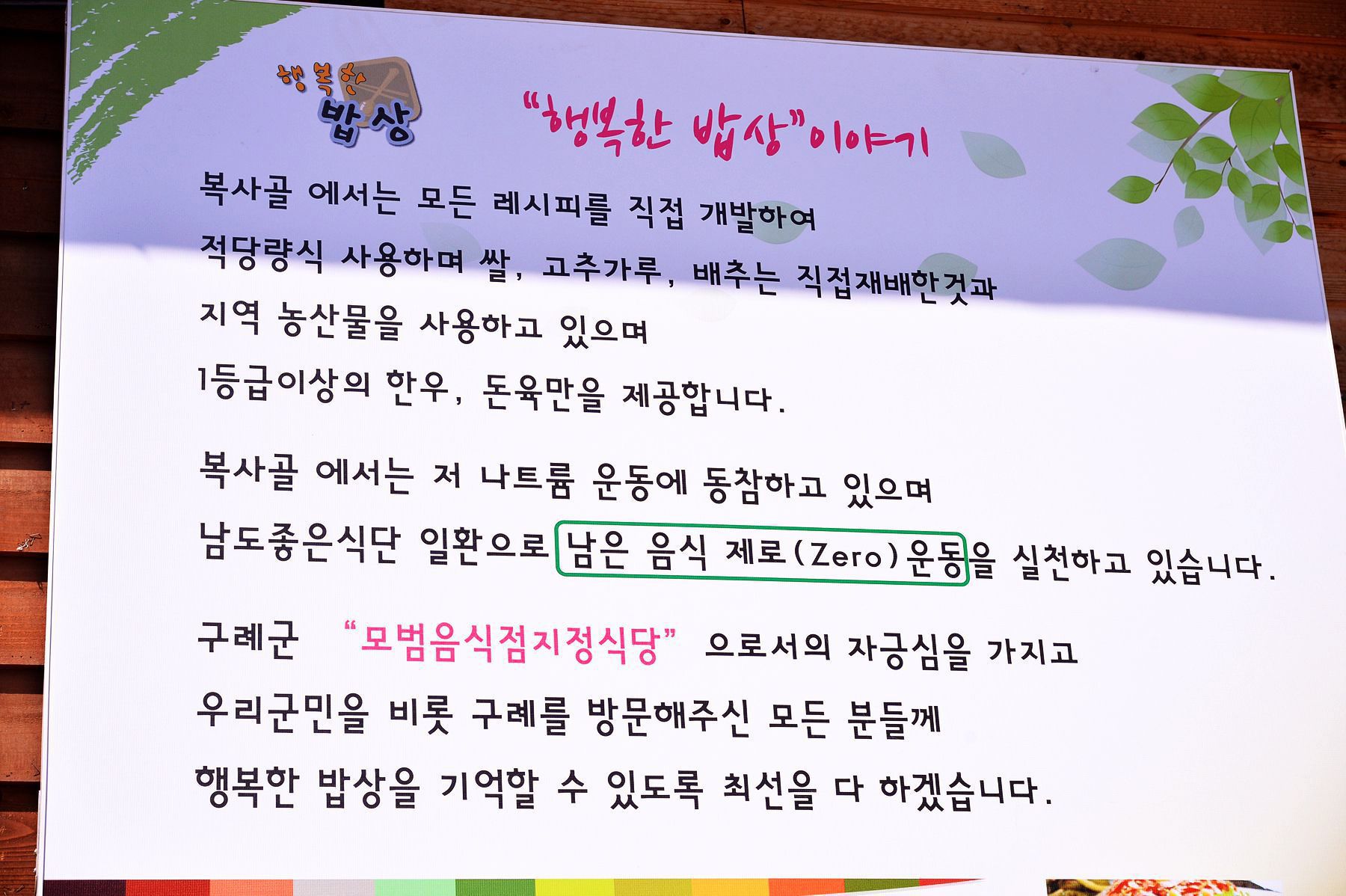 바로 구례군 모범음식점으로 지정된 식당인 '복사골명가'인데요, 1,2층으로 운영되며 총 220명까지 수용 가능한 식당이랍니다.