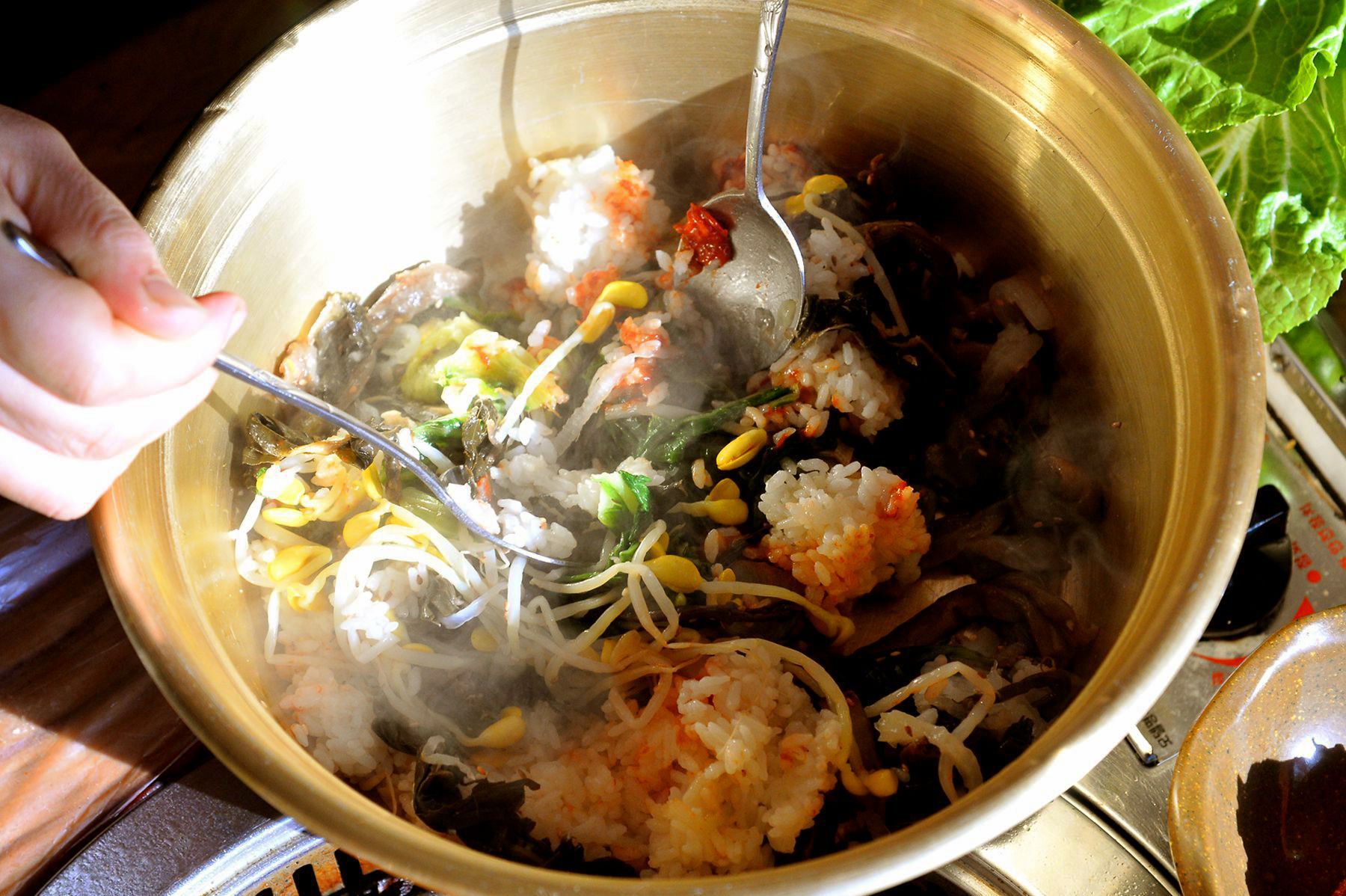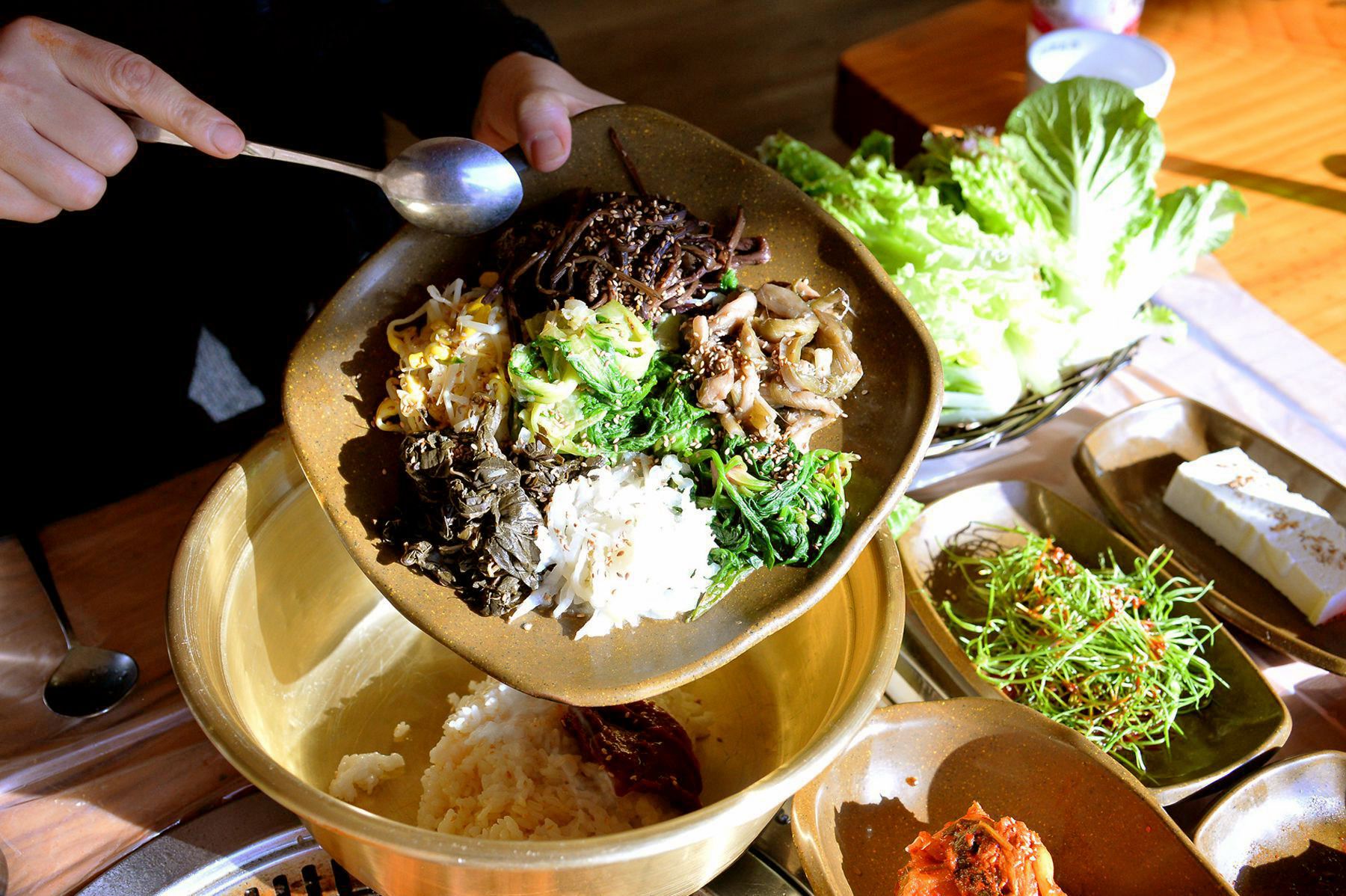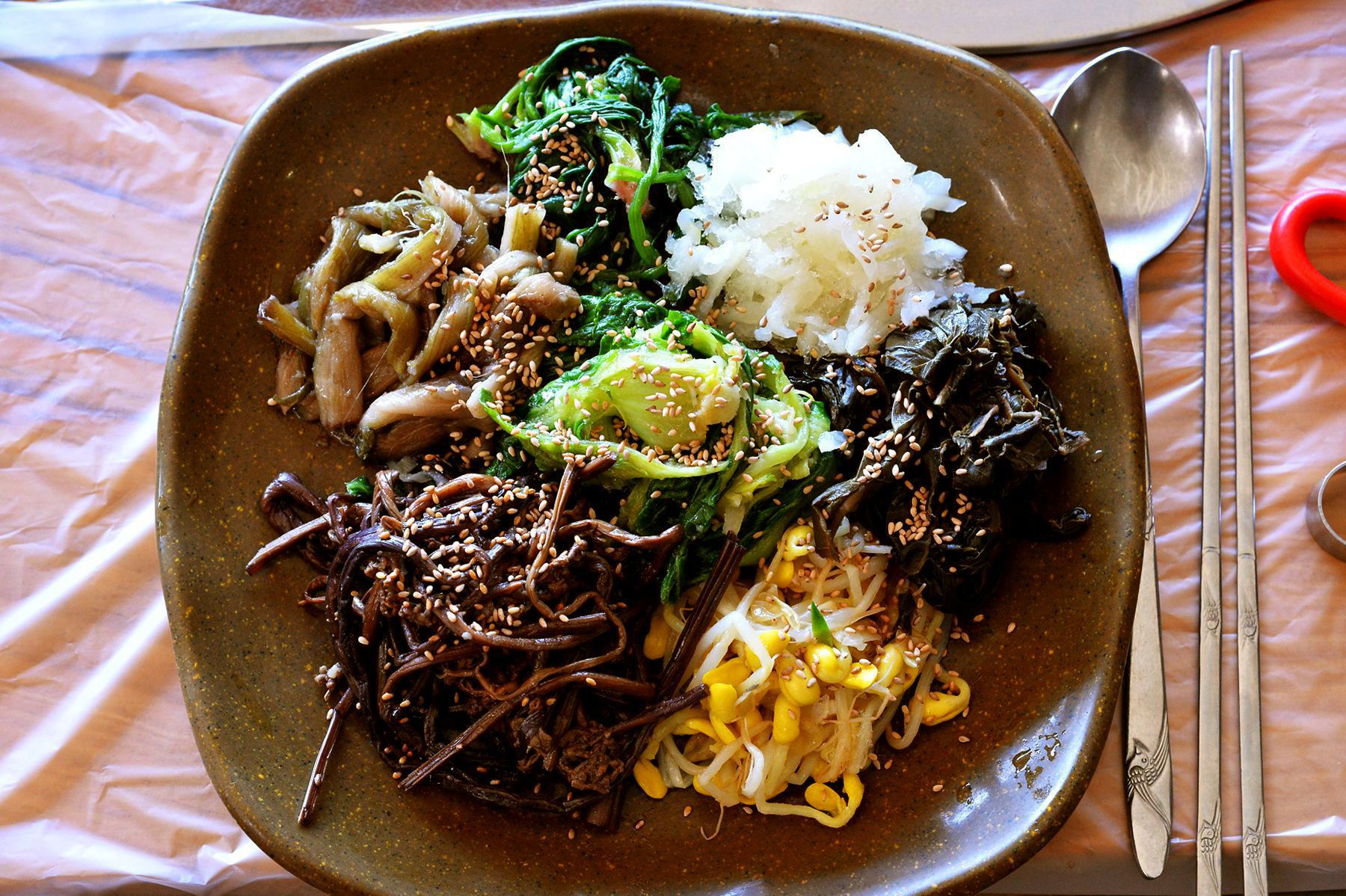 물 맑고 공기좋은 지라산에 자란 나물들과 고추장을 넣고 슥슥 비벼서 먹는 비빔밥은