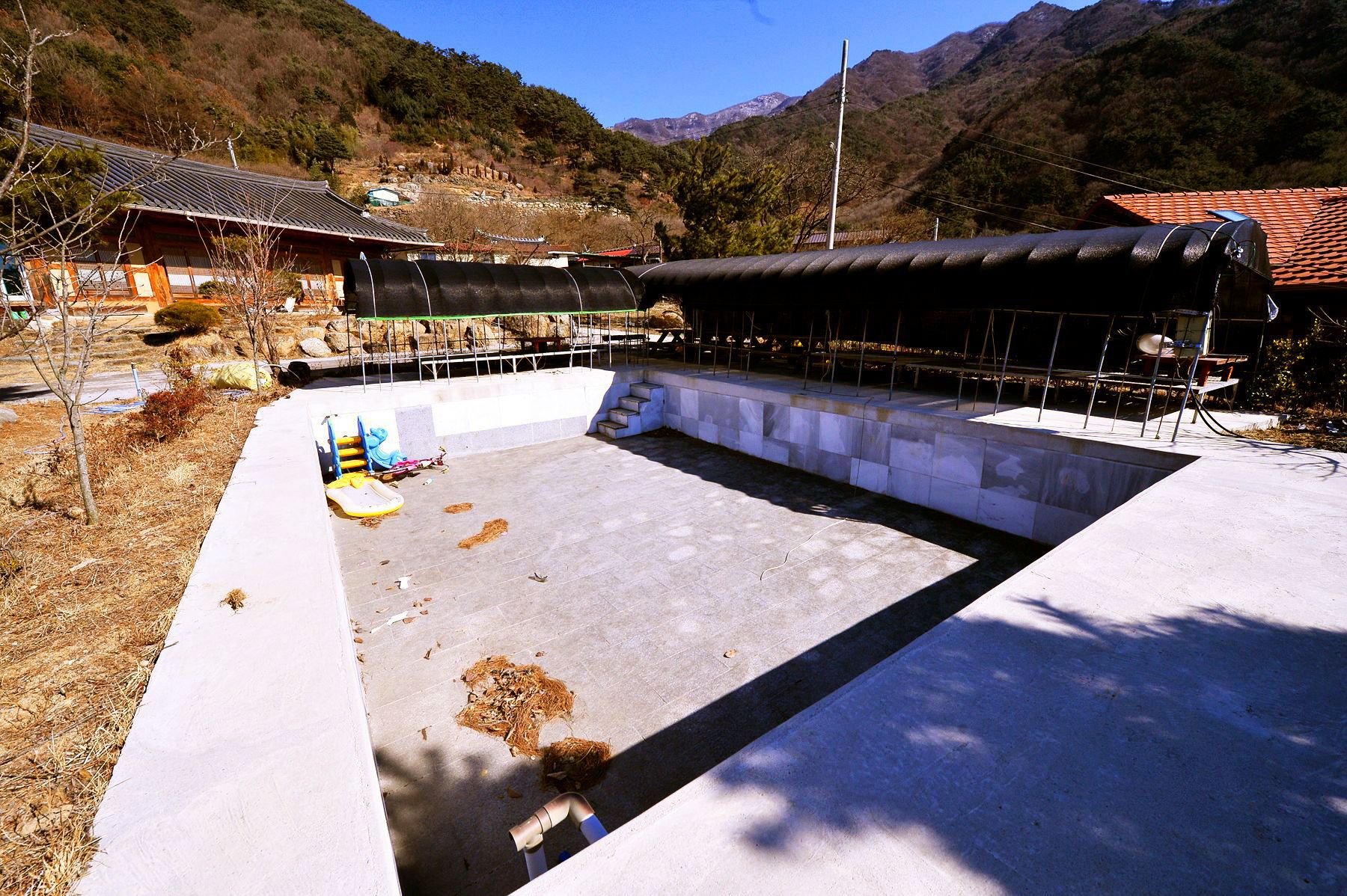 뜰에는 큰 풀장이 있어서 여름에 양미한옥가든을 찾으시는 분들은