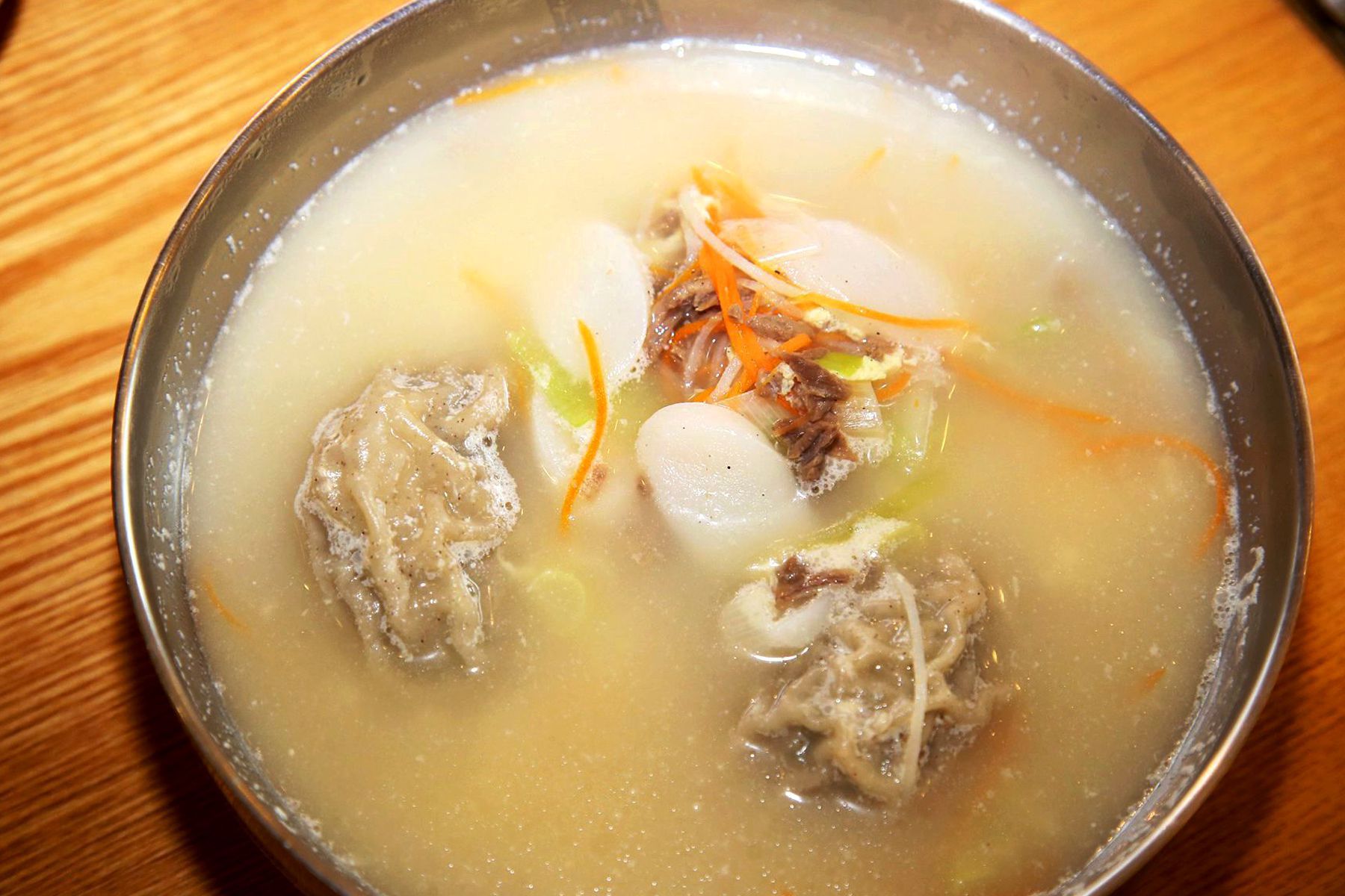 '사골떡만두국'은 깊고 진한 사골로 만에 건강에 좋은 산채메밀왕만두와 떡이 들어가