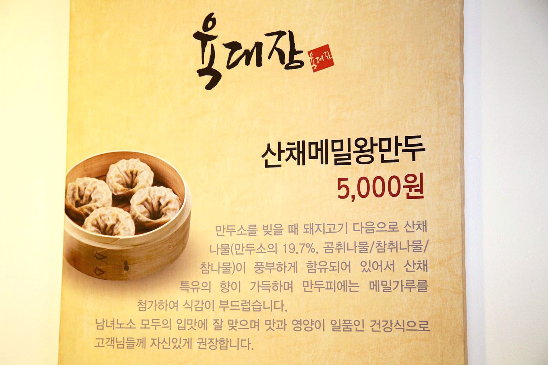 육대장 '산채메밀왕만두'는 만두피에 메밀가루를 첨가해서 식감이 부드러운게 특징입니다.