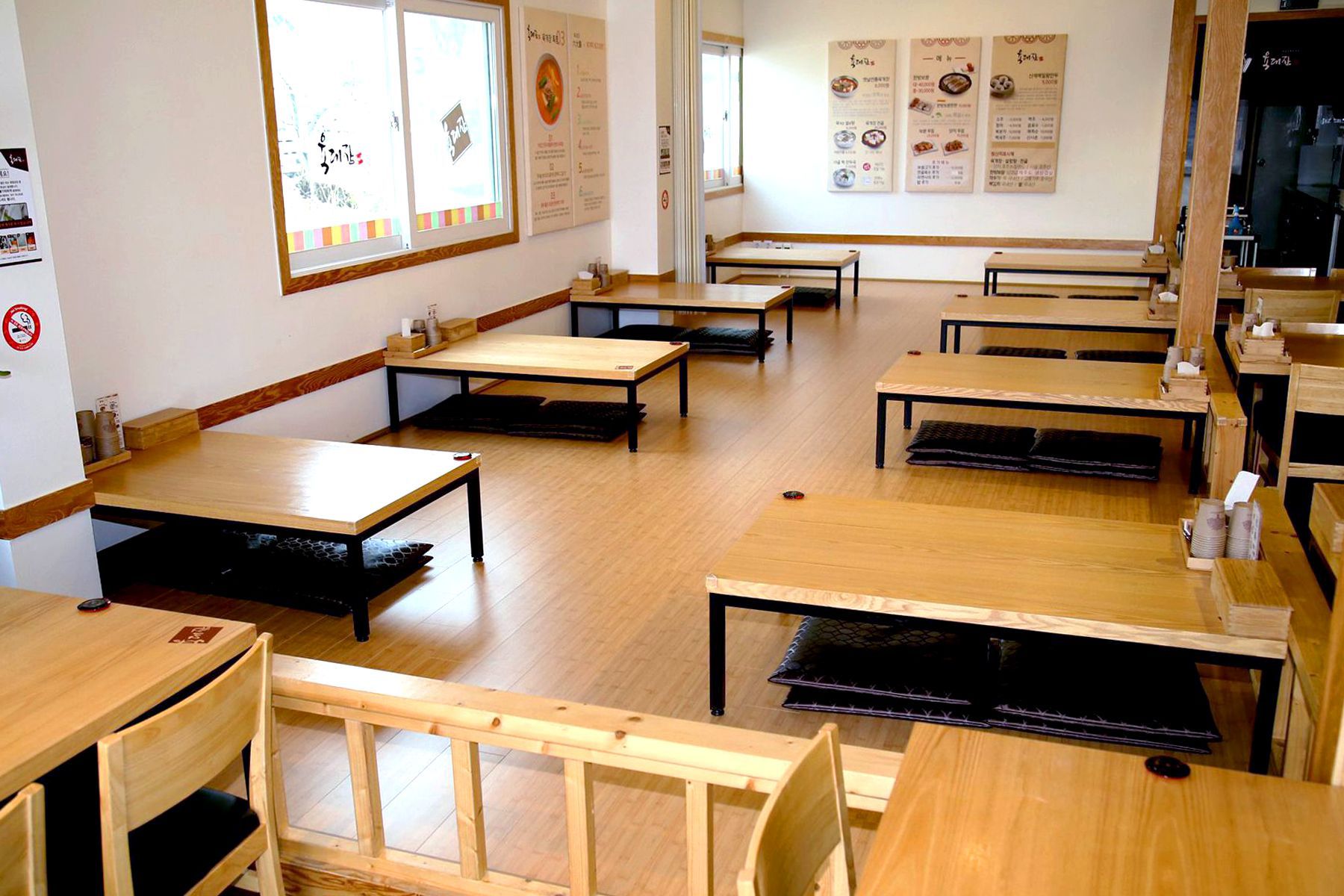 넓고 깔끔해서 쾌적한 실내에서는 좌식테이블, 입식테이블 모두 이용 가능하십니다.