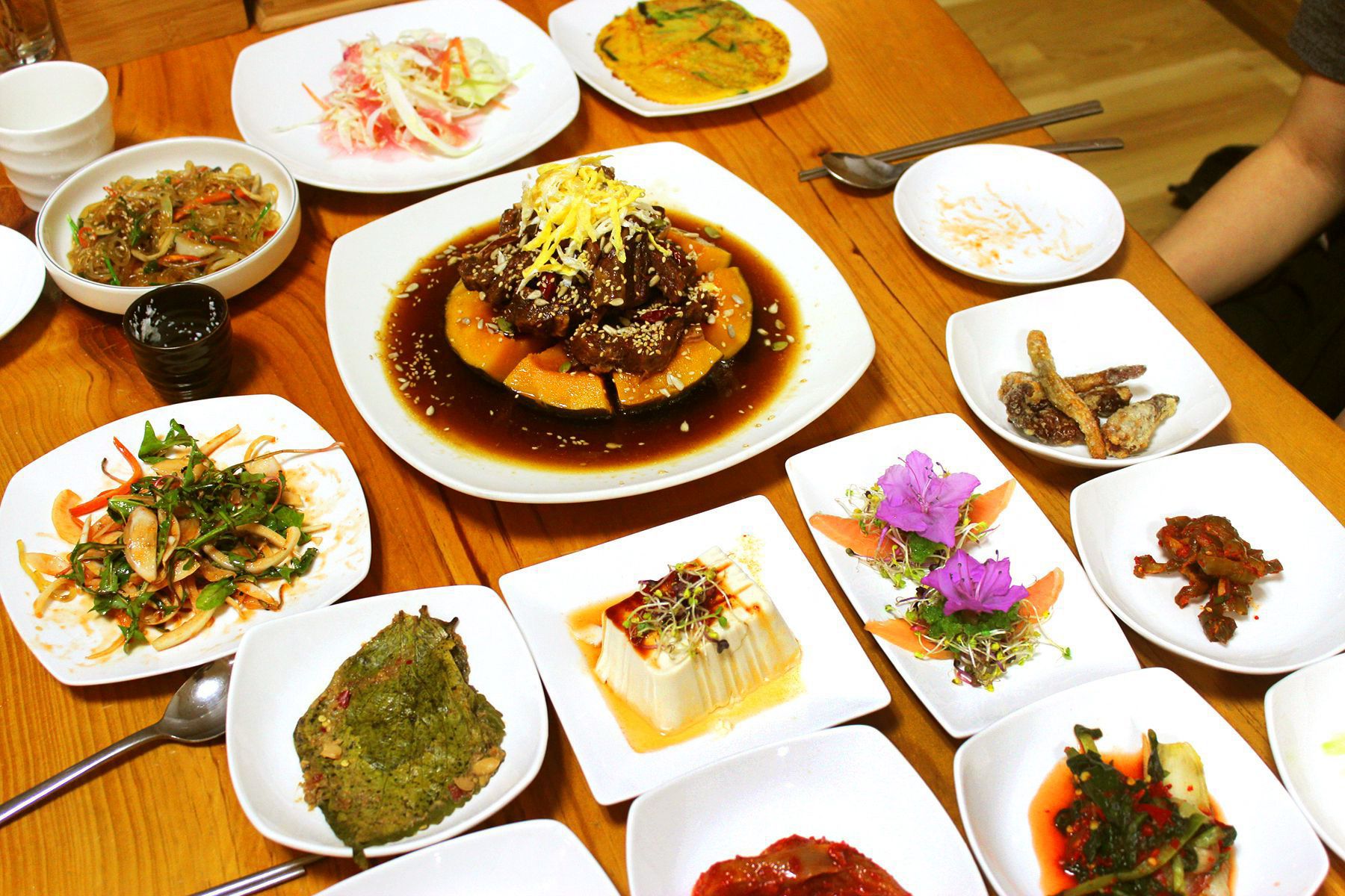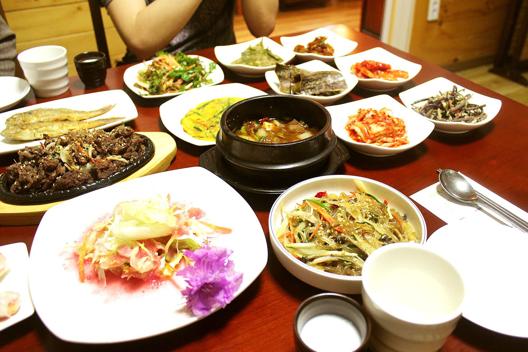 기본적으로 10개의 반찬과 잡채, 한방불고기,조기구이,된장찌개,가마솥밥이 나온답니다.