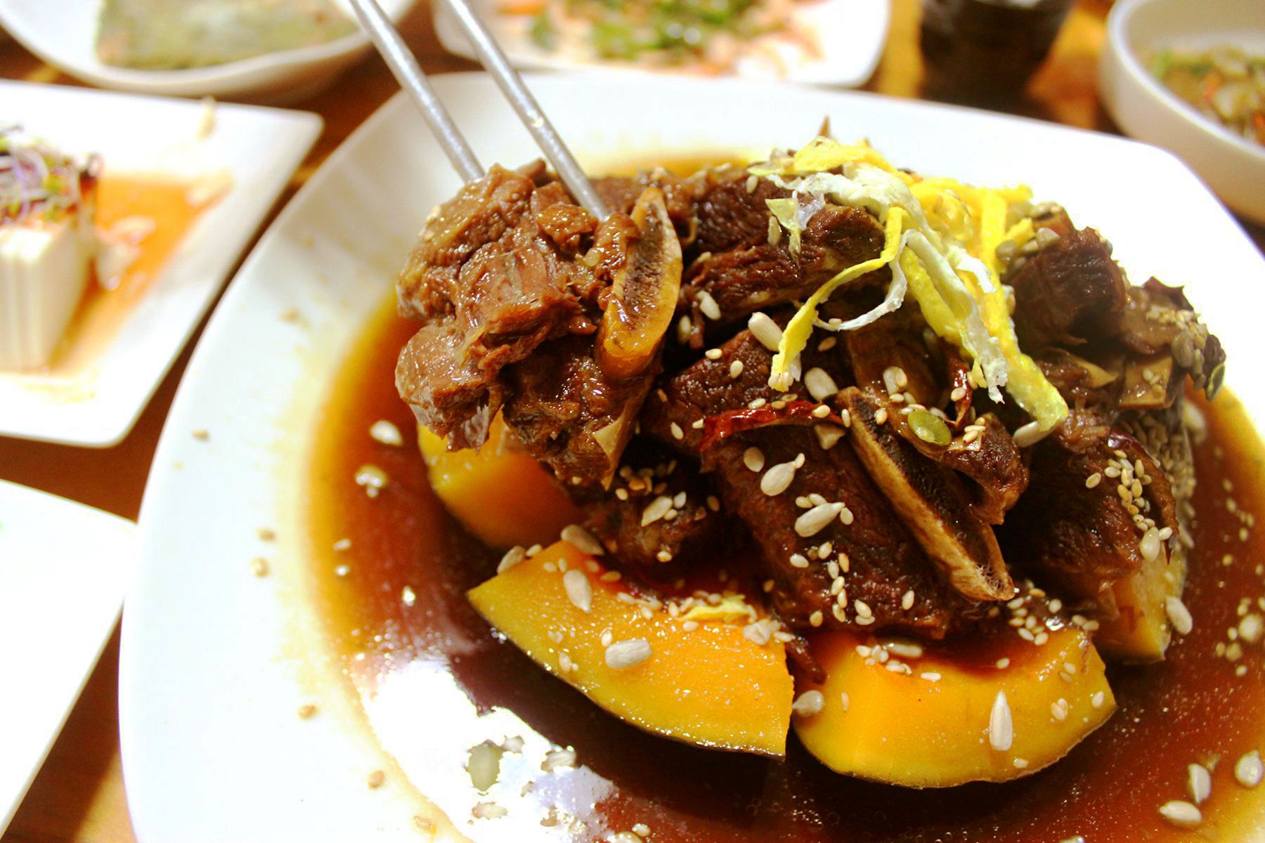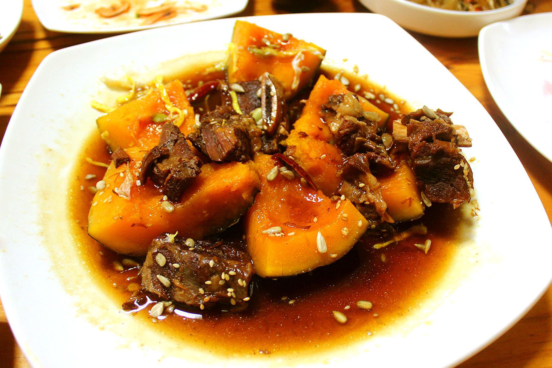 매화한상차림 만큼 손님들이 오시면 많이 찾는 메뉴 중 하나인 숙지황단호박소갈비찜입니다.