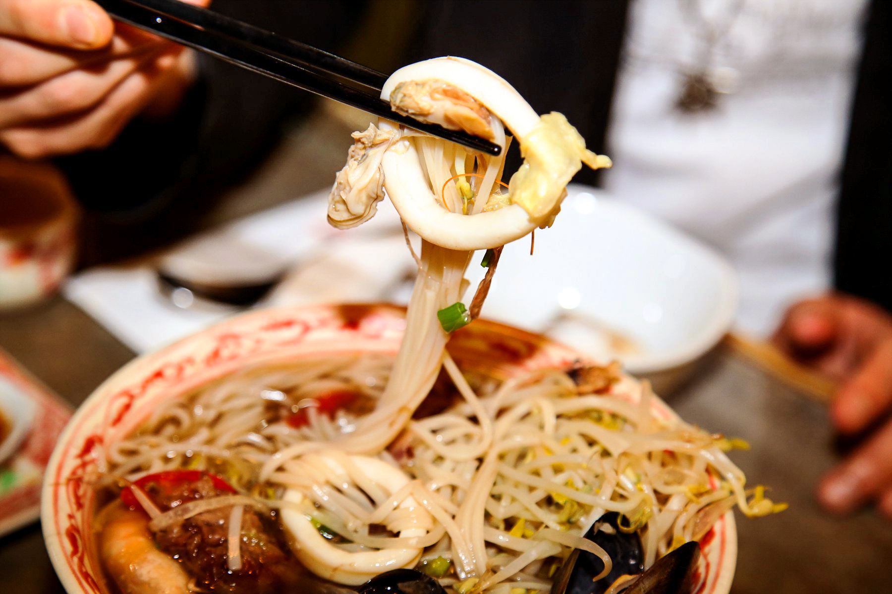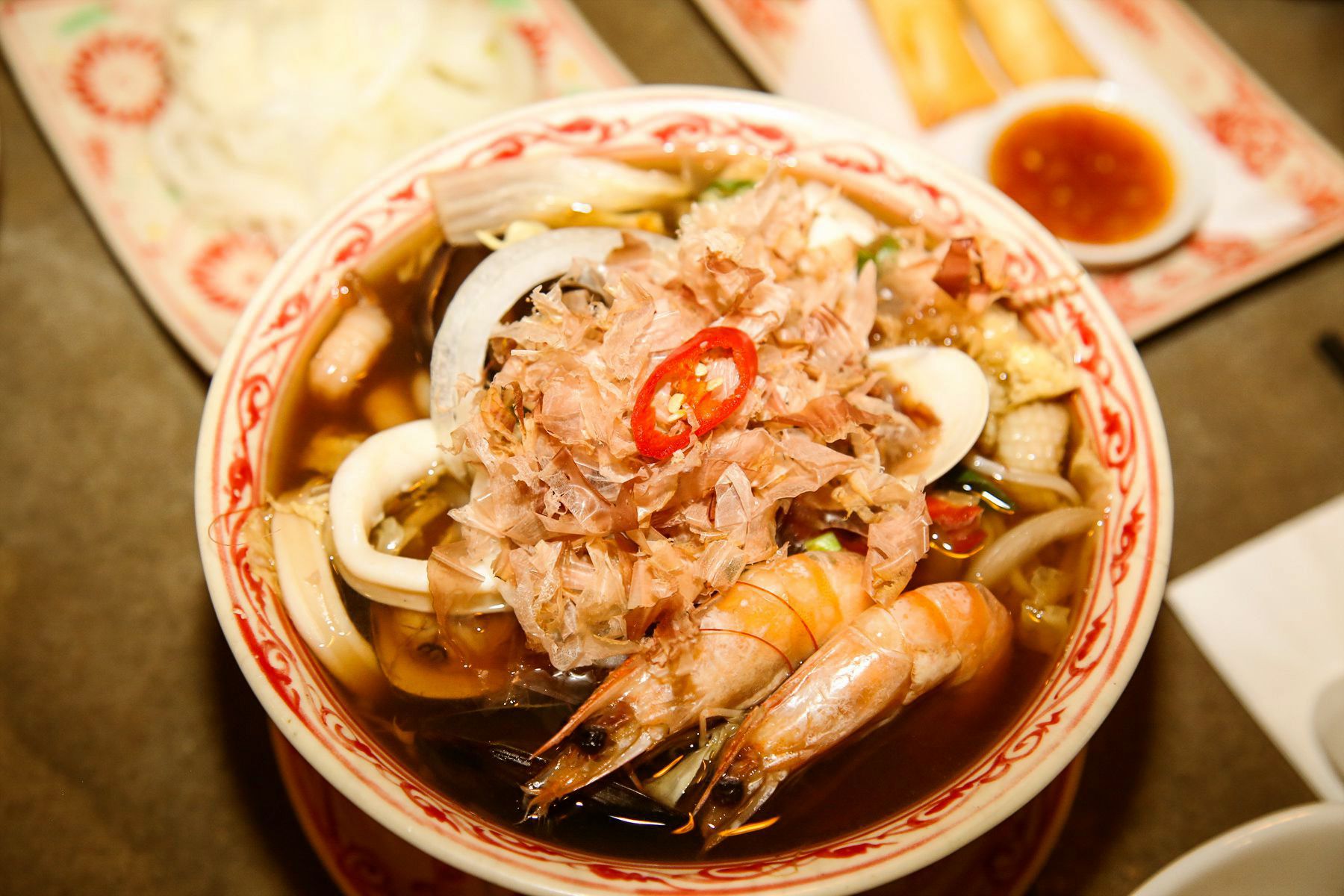 해산물 쌀국수는 가쓰오부시, 새우, 오징어, 홍합, 조개 등