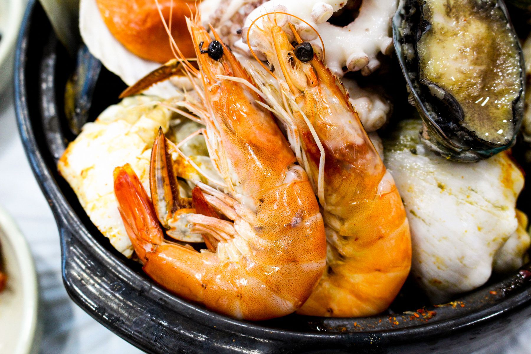 해물탕 안에는 싱싱한 왕새우랑 낙지랑 다양한 조개들