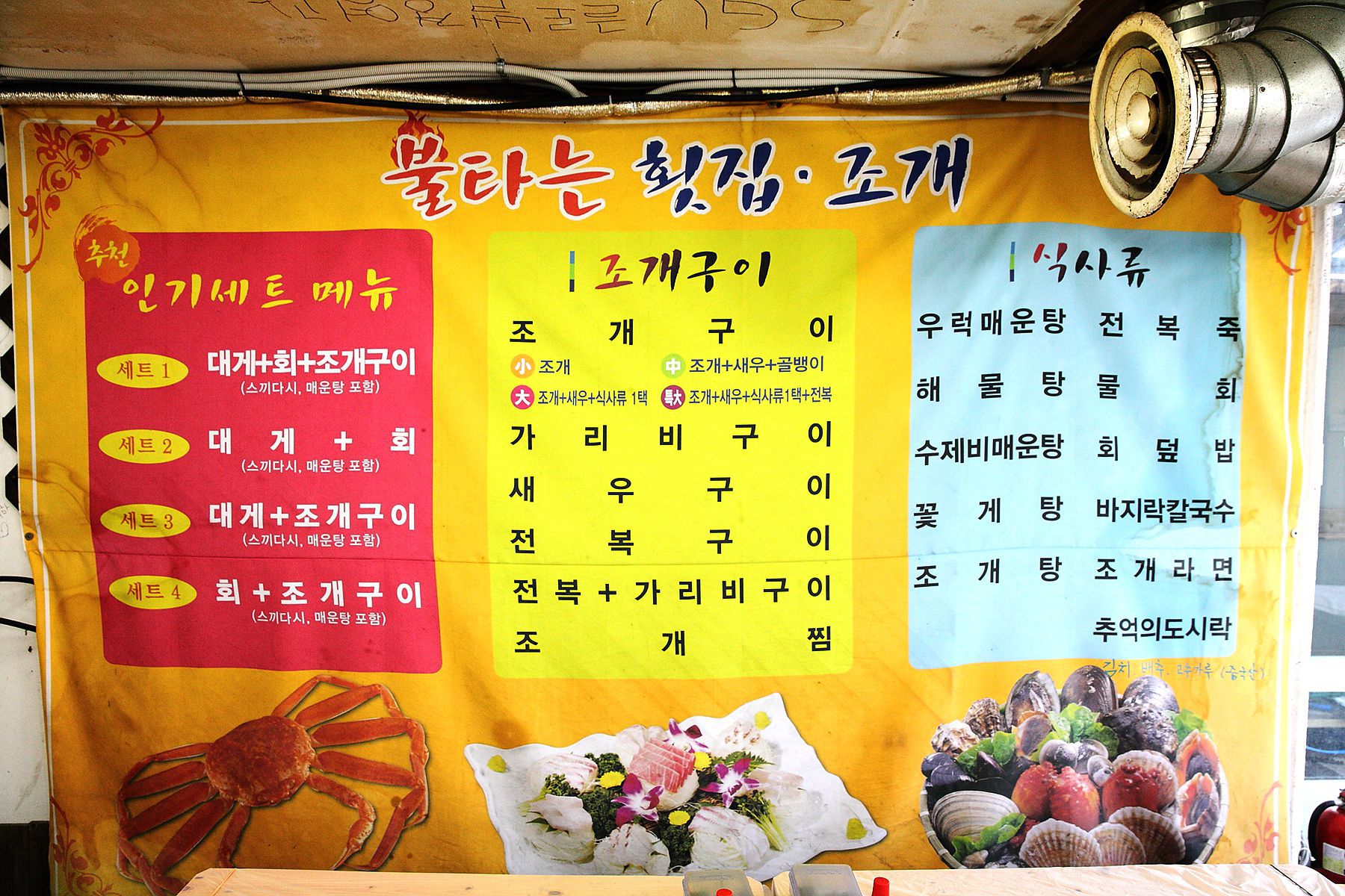 인기메뉴로는 대게+회, 대게+조개구이 , 회+조개구이 세트메뉴가 있어서