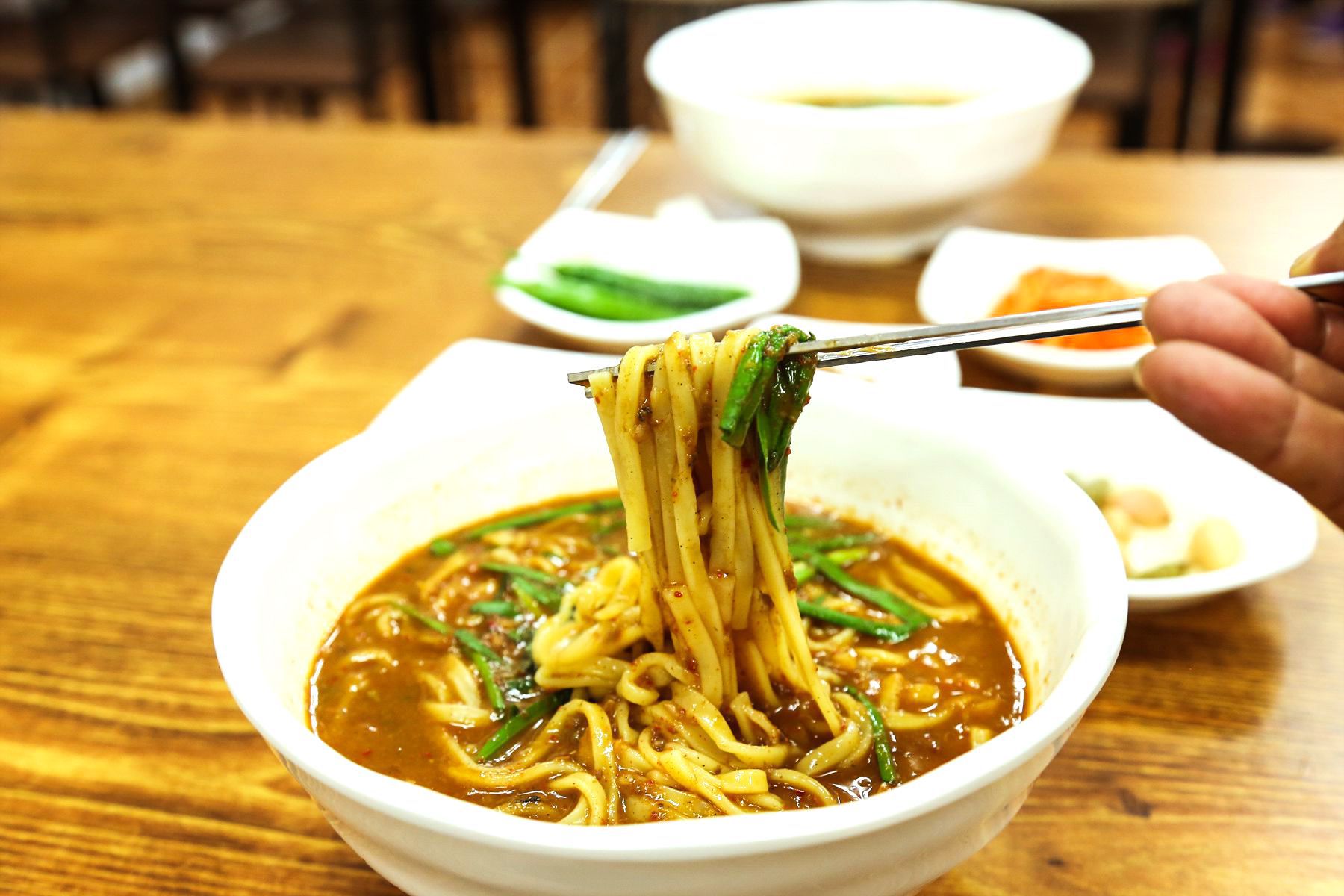 어탕국수의 면발은 일반 국수면발이 아닌 칼국수 면발처럼 굵은면을 사용하며 쫄깃쫄깃한 식감이 일품!