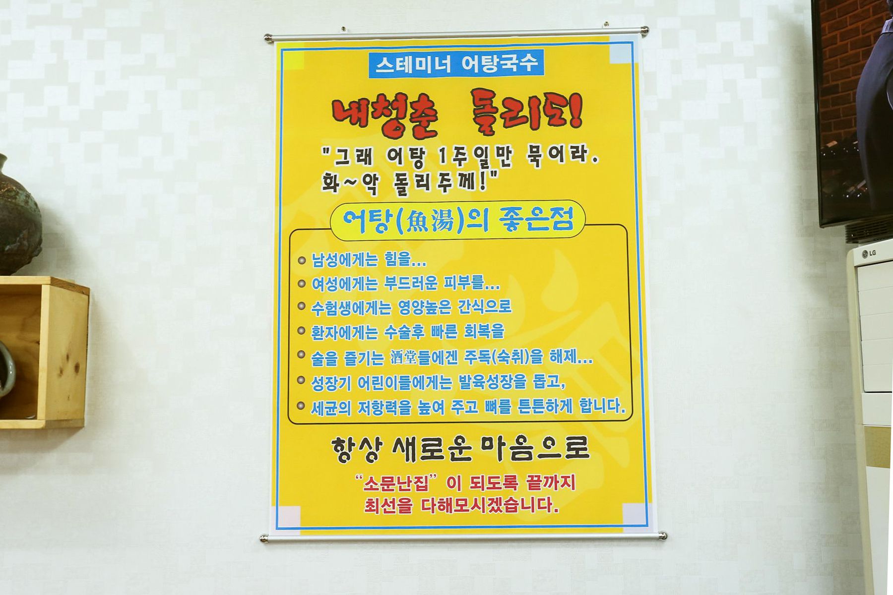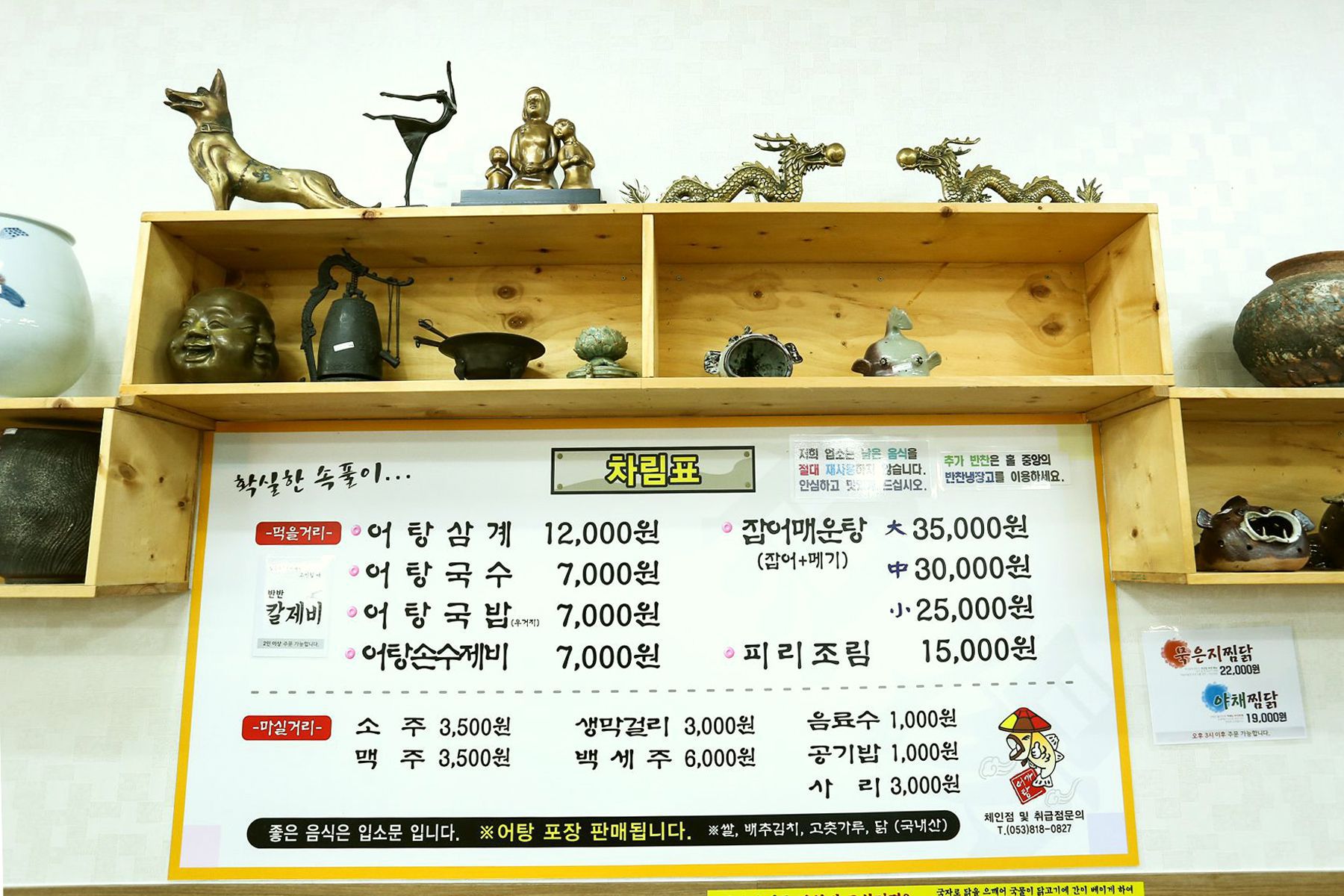 대표메뉴로는 어탕국수,어탕국밥,어탕삼계,매운탕이 있습니다.