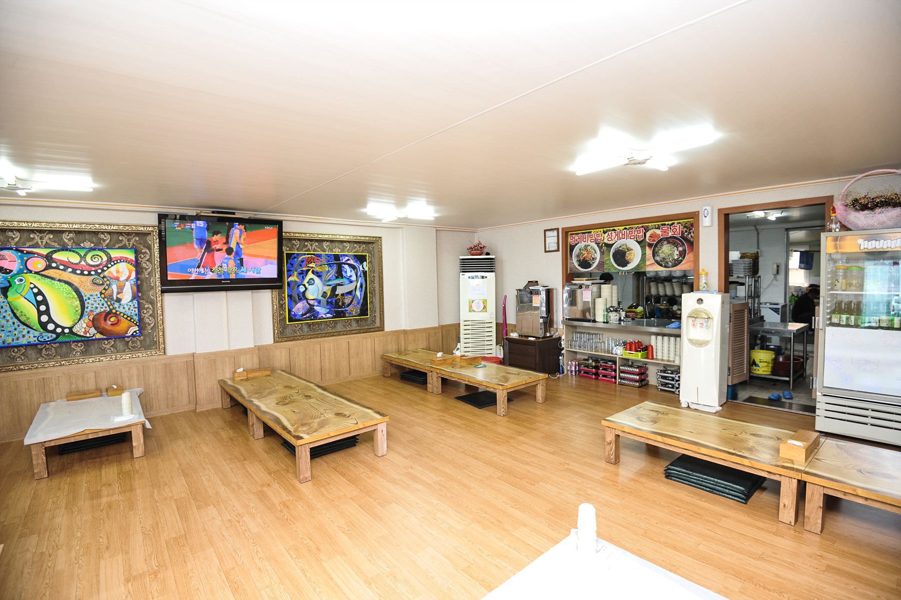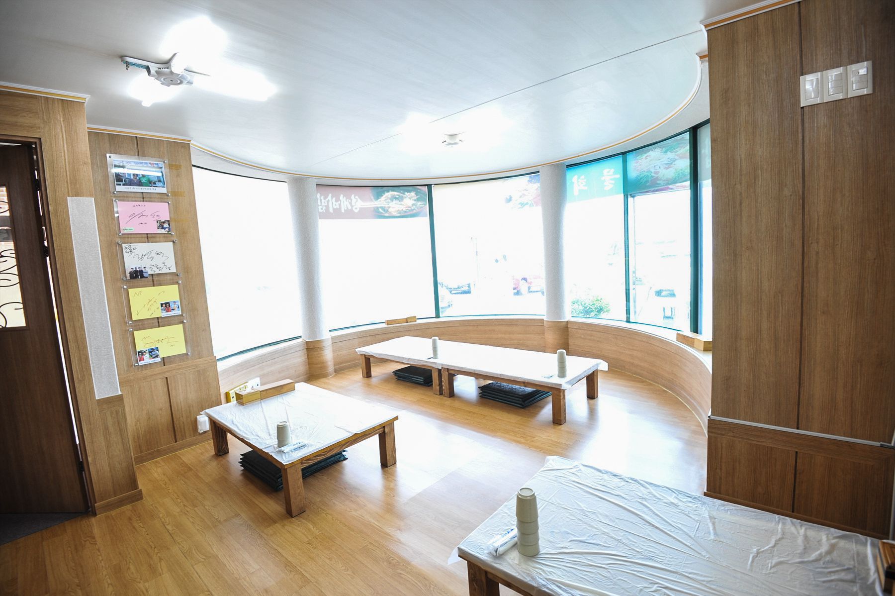 탁트인 시원한 큰창이 인상적인 무송자연산횟집의 내부 모습입니다.