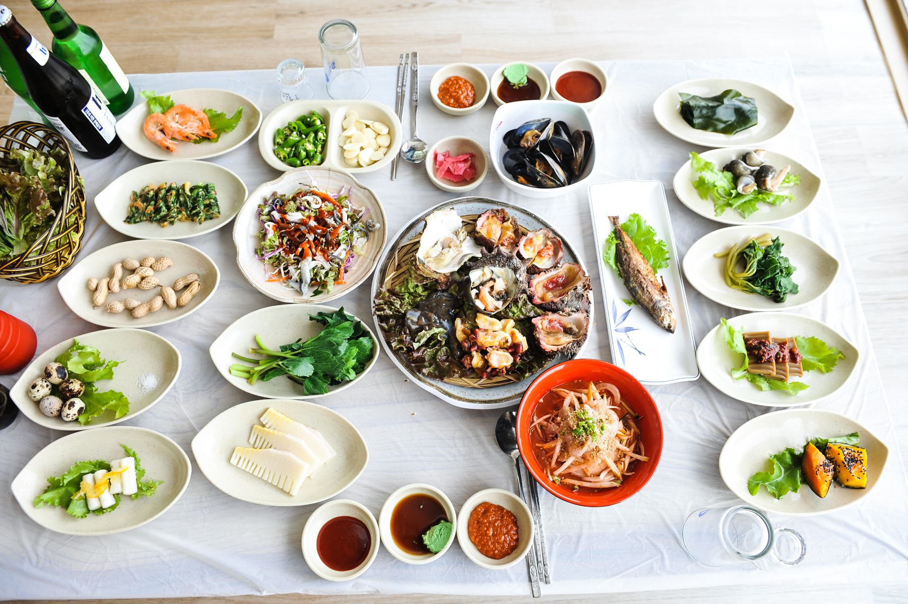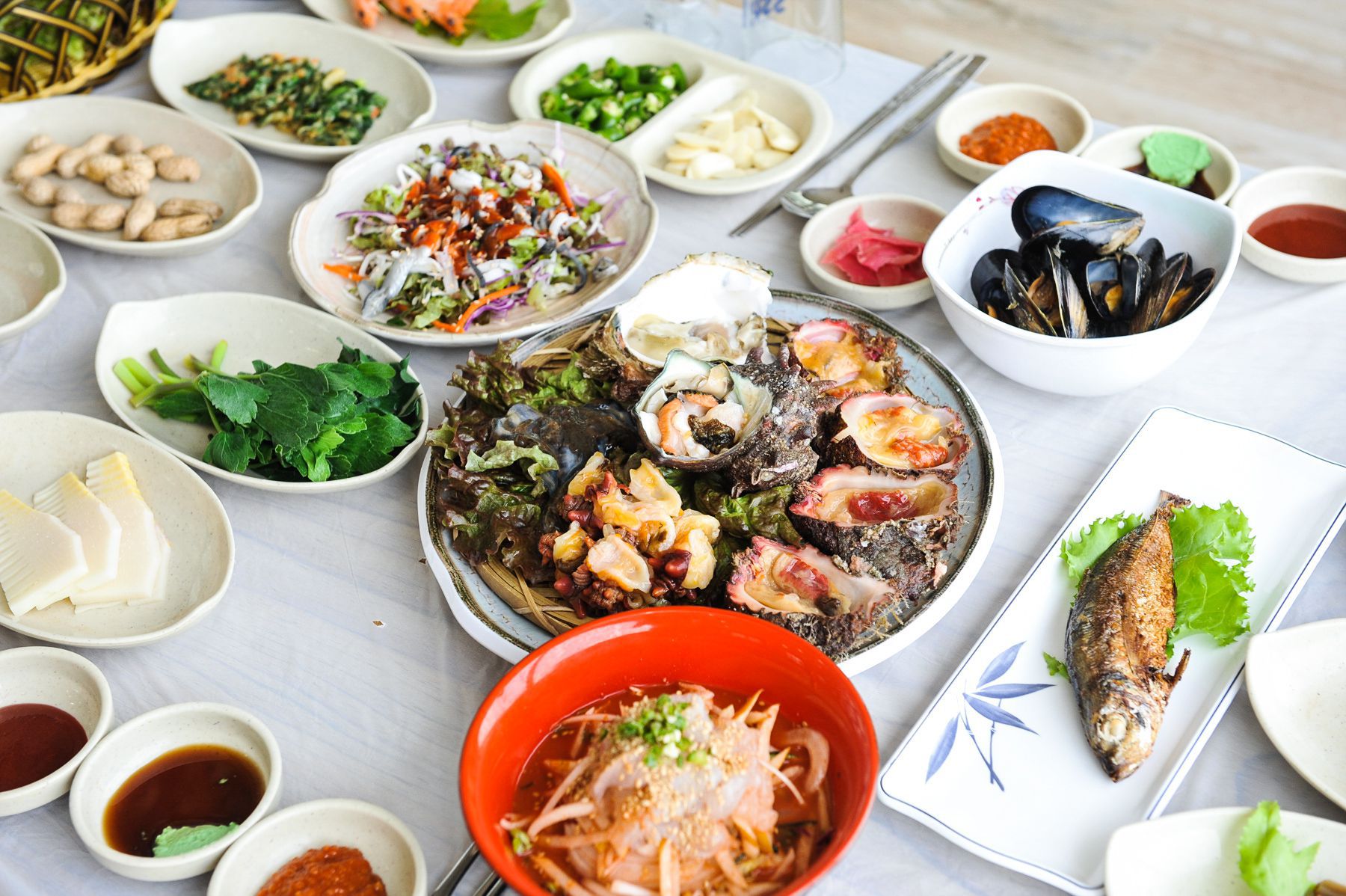 거제도 청정해역답게 싱싱한 해산물들이 가득 차려져있으며 해산물 뿐만아니라 물회,매운탕이 서비스로 제공된답니다.