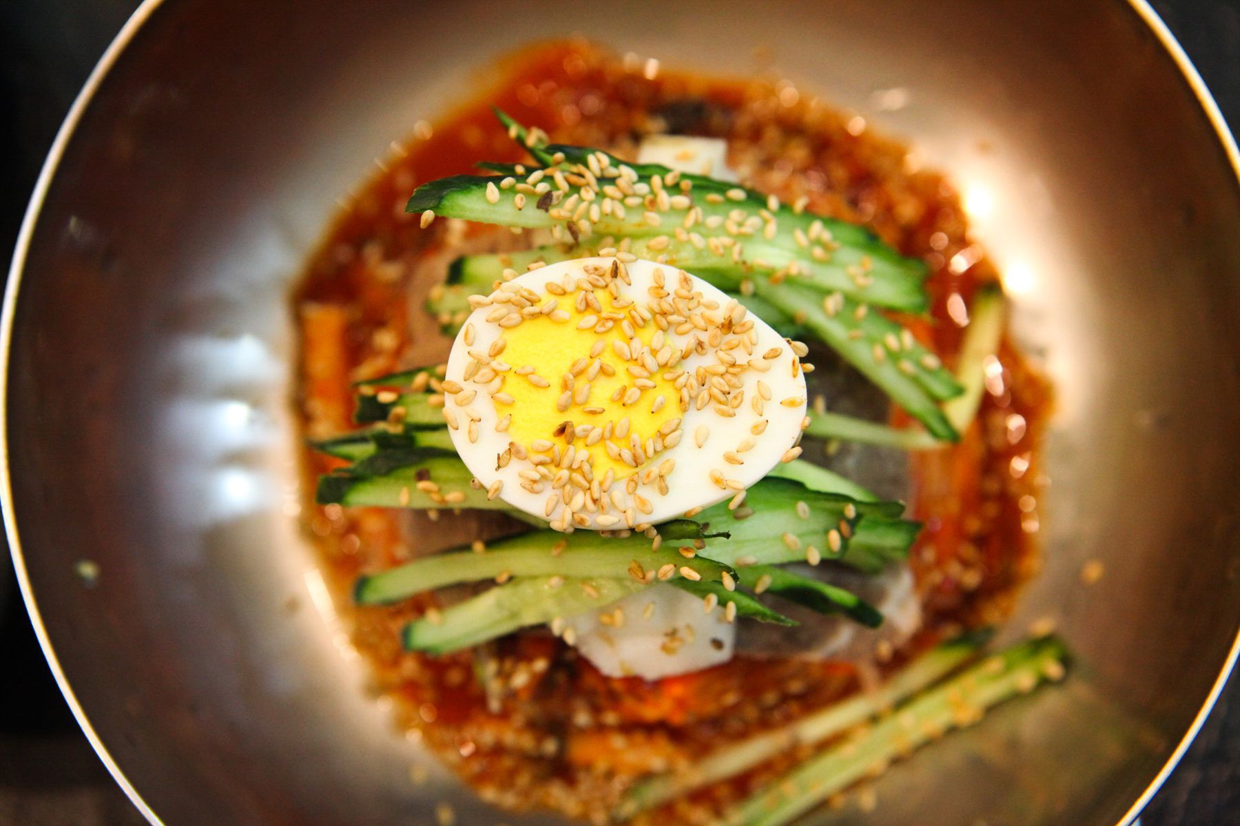 쫀득하고 쫄깃한 면이 일품으로 올려진 고명과 함께 냉면을 드신다면