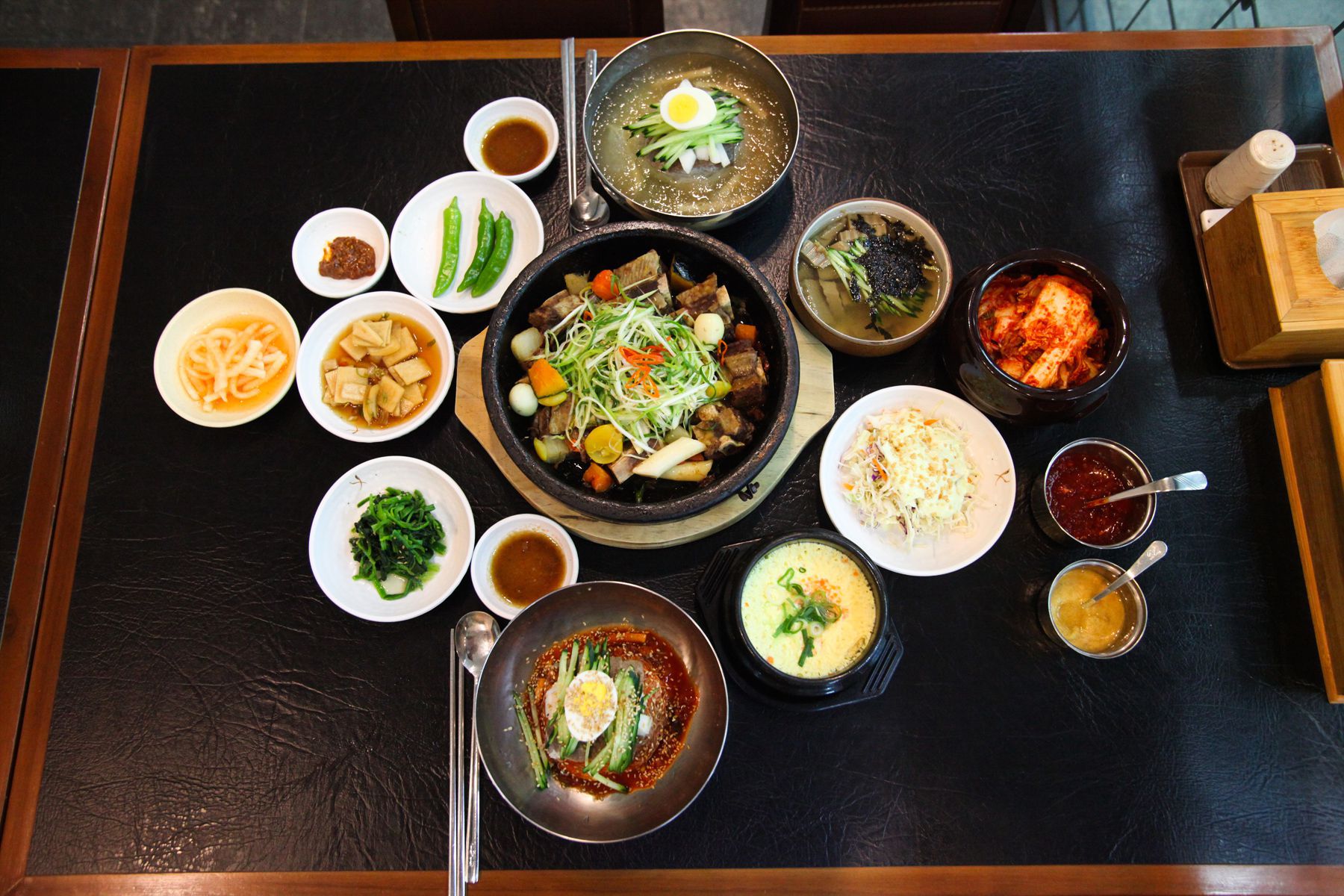 개운한 국물맛이 일품인 갈비탕과, 매콤하고 영양만점인 갈비찜, 직접 손으로 반죽하여 뽑아내는 냉면까지