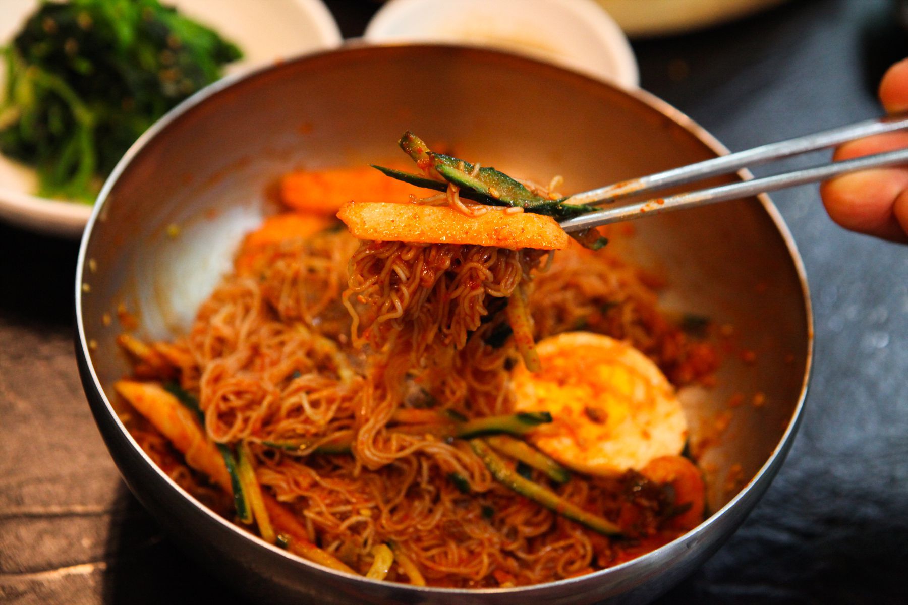 입에서 아삭아삭 씹히는 맛이 아주 일품인 비빔냉면의 맛을 제대로 느껴보실 수 있을 것입니다.