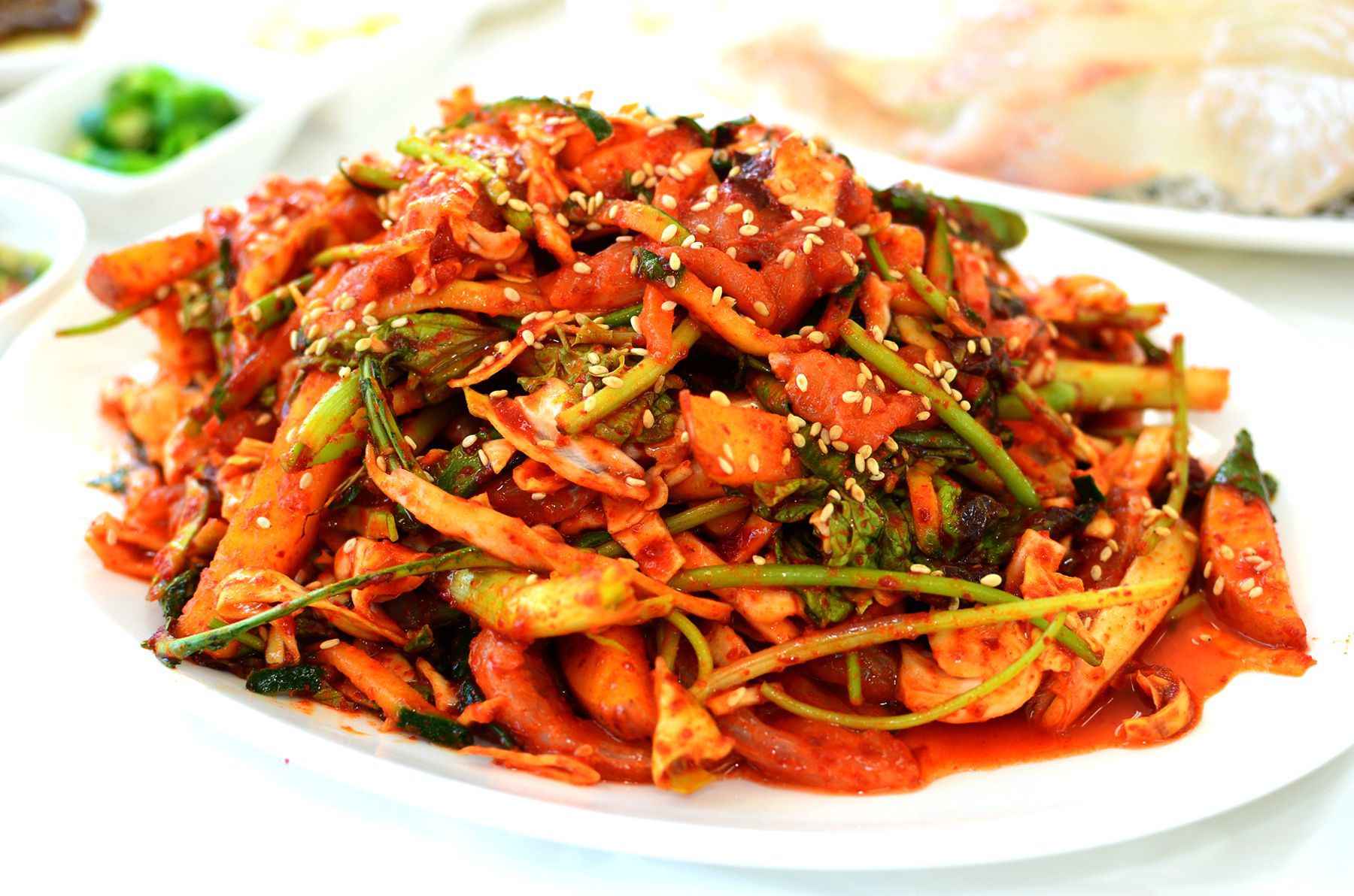 실치회는 오이와, 배, 들갯잎, 양배추, 당근 등 각종 야채와 양념을 섞어