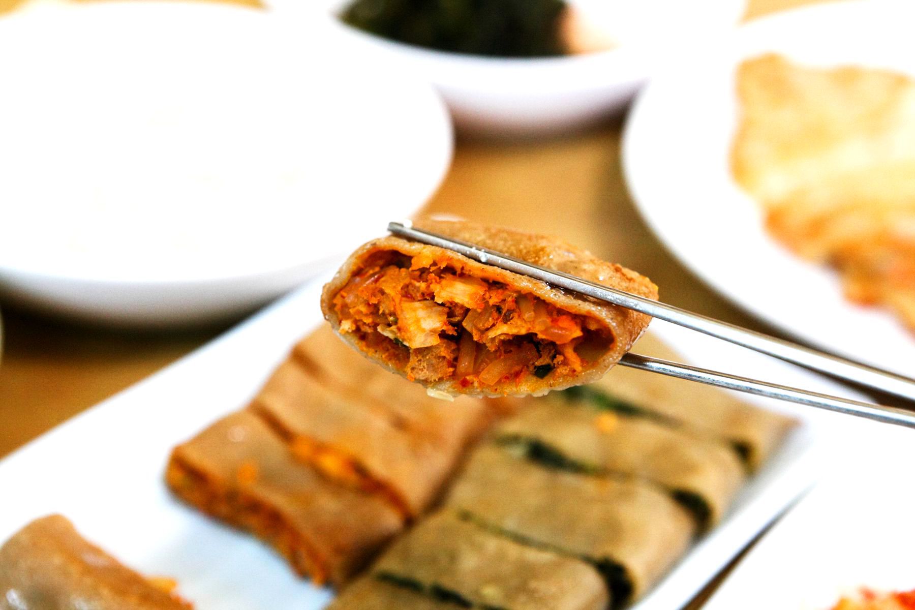 매콤하면서 메밀과 안에들어있는 속의  조화가 잘 어울리는 메밀전병까지~!!