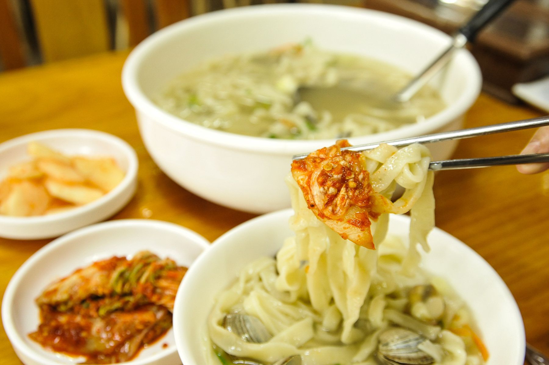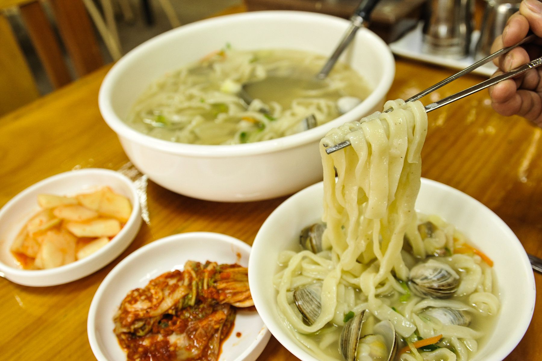 직접 만드는 수타이기에 훨씬 쫄깃하고 정성으로 우려낸 육수까지 더해지니
