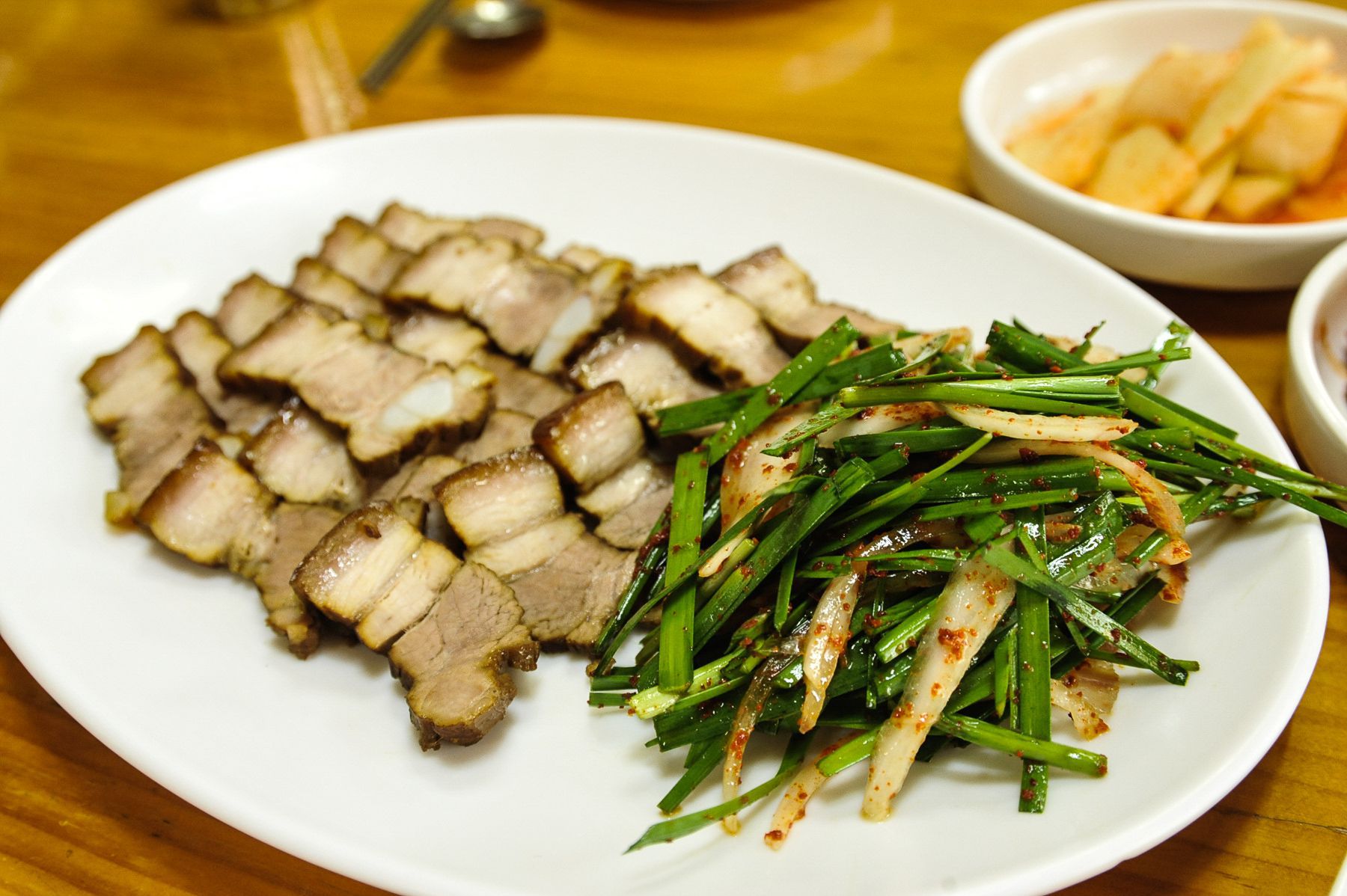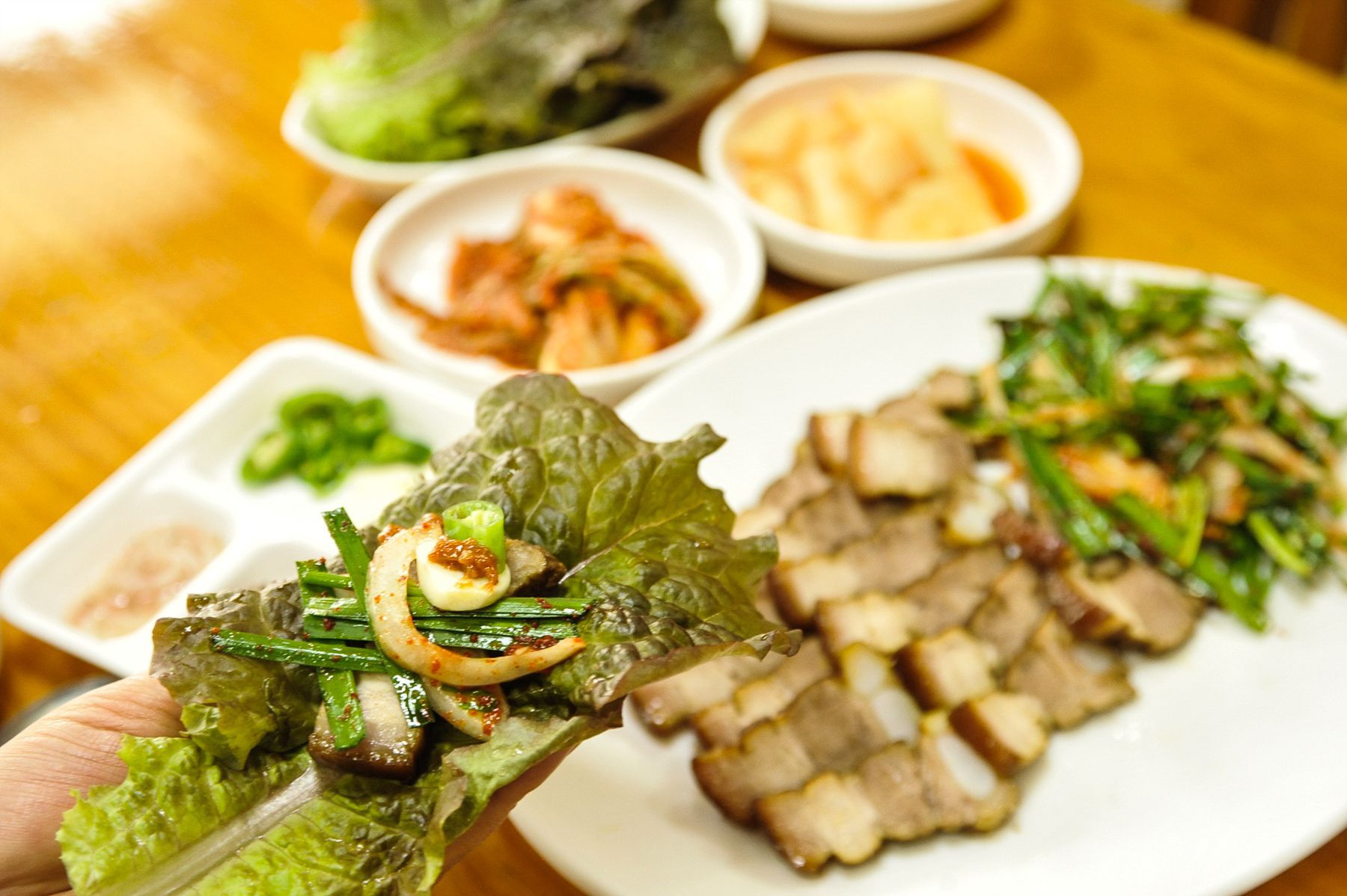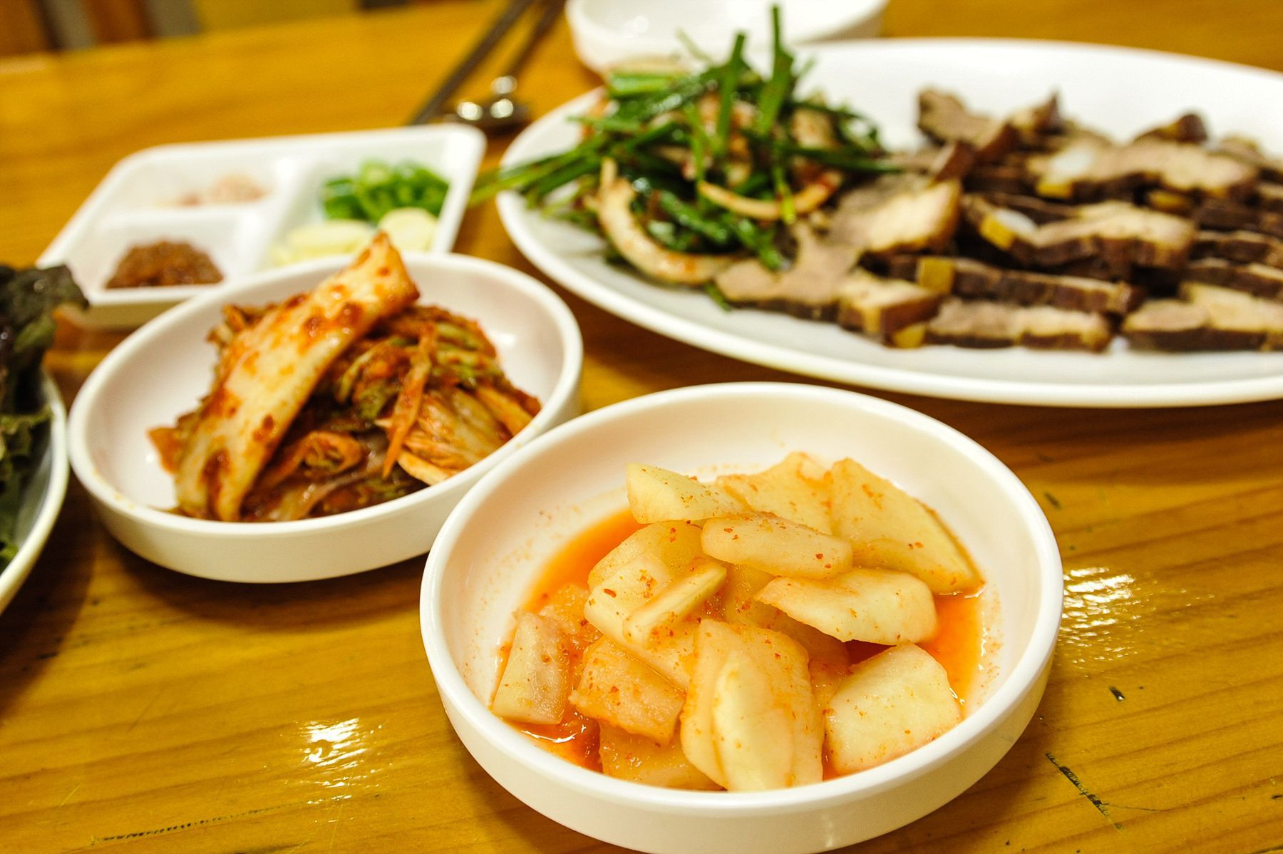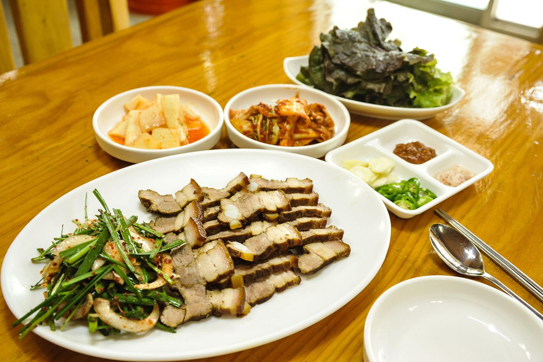 묵은지를 갈아넣은 '묵은지 수제비'와, '한방수육'과 '두부 두루치기' 등등