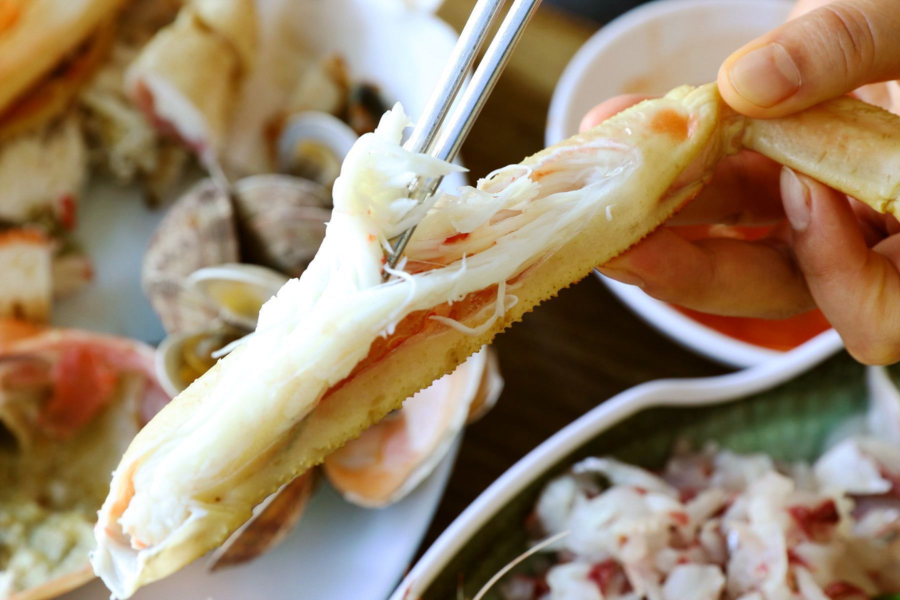 쫄깃쫄깃 식감이 살아있는 싱싱한 회와 살이 꽉꽉 차있는 대게를먹고