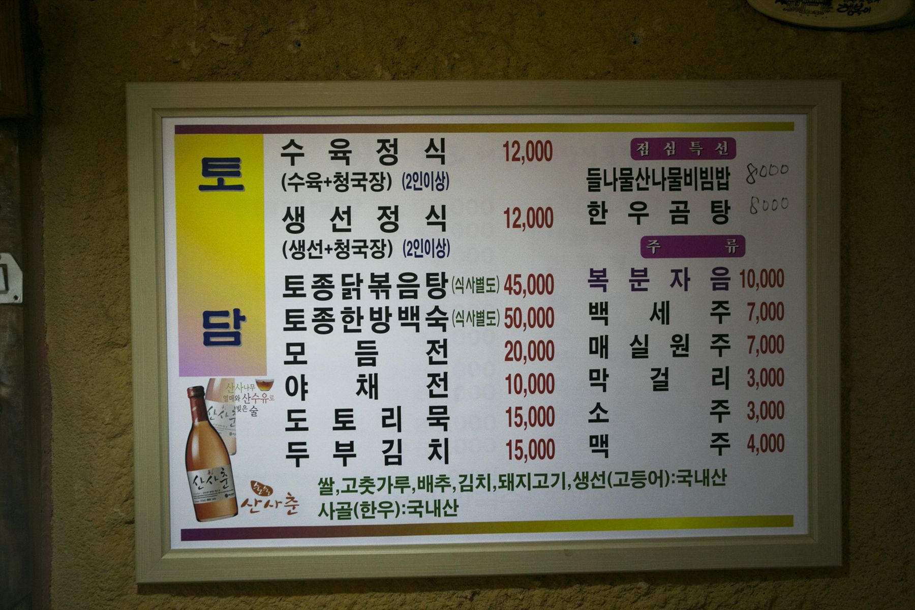 그리고 토종볶음탕, 토종한방백숙, 도토리묵, 모듬전, 야채전, 두부김치