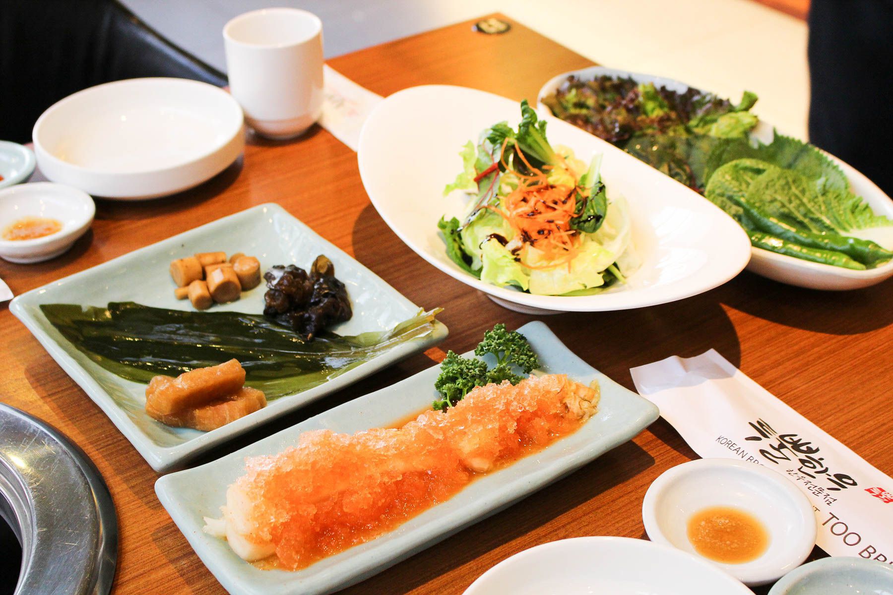 투뿔한우에서는 다양한 모듬지와 신선한 야채들이 듬뿍 제공되는데요