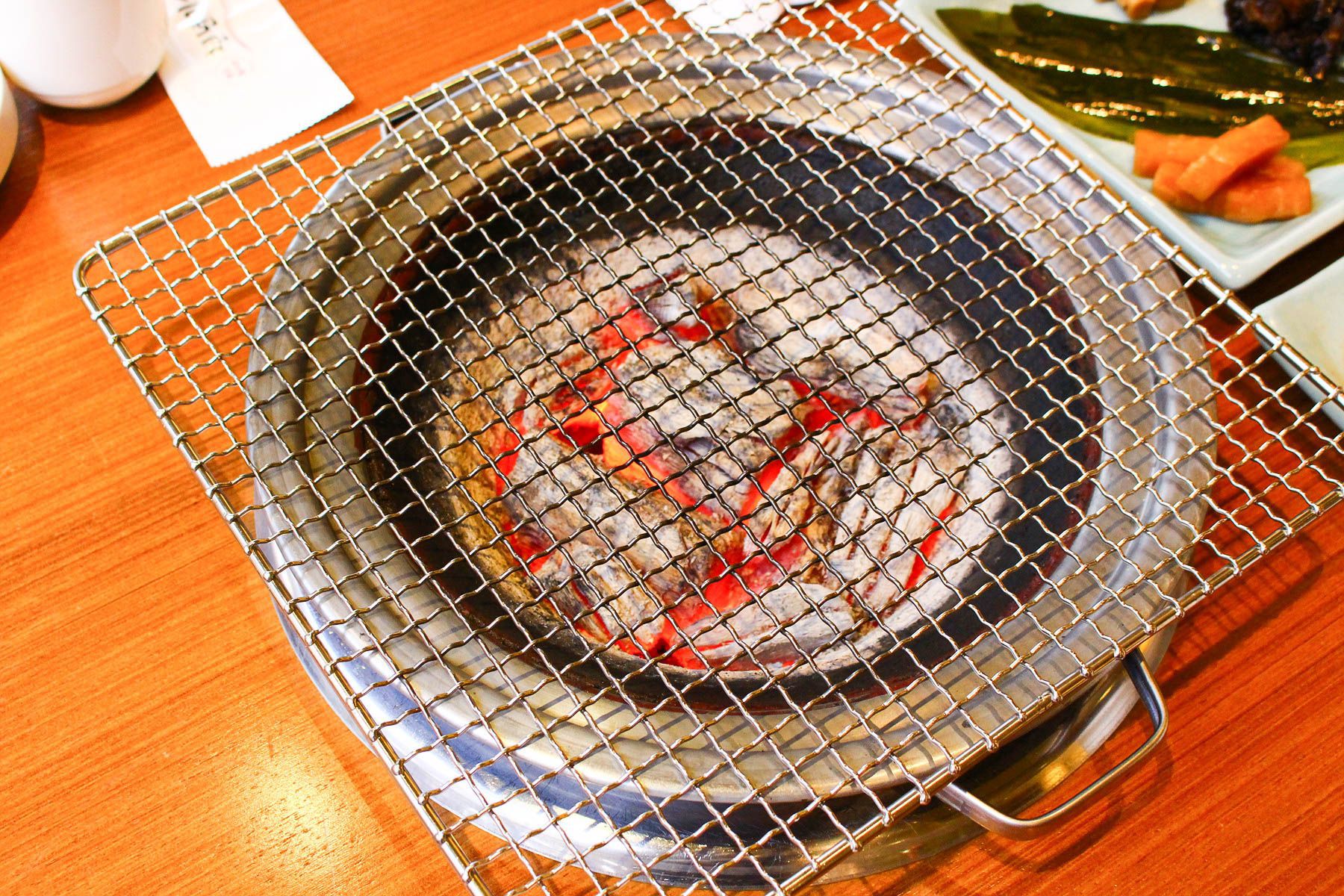 불꽃이 살아 신선한 고기를 맛있게 익혀주는 숯이 준비되면