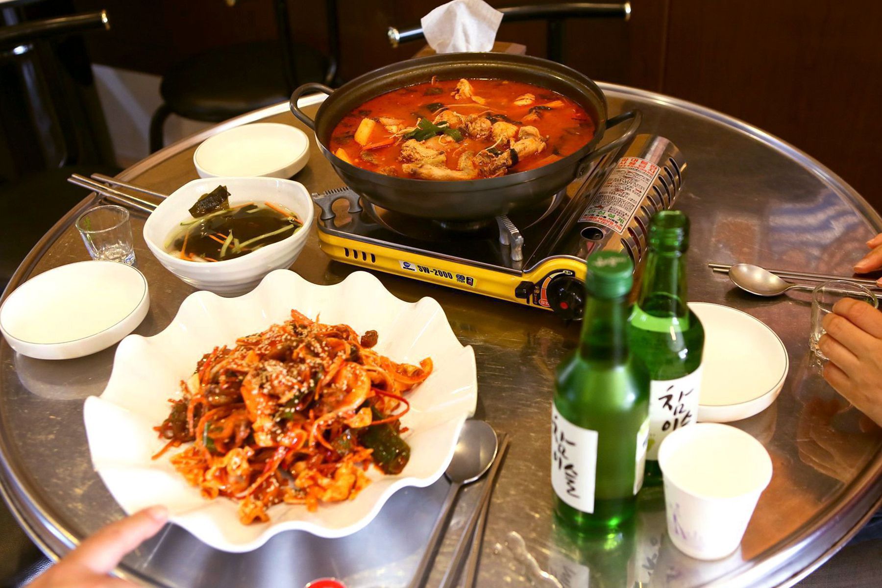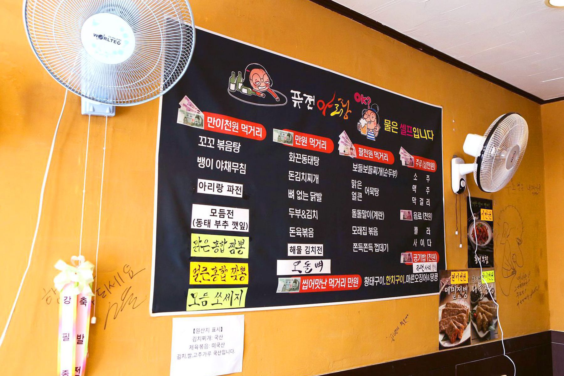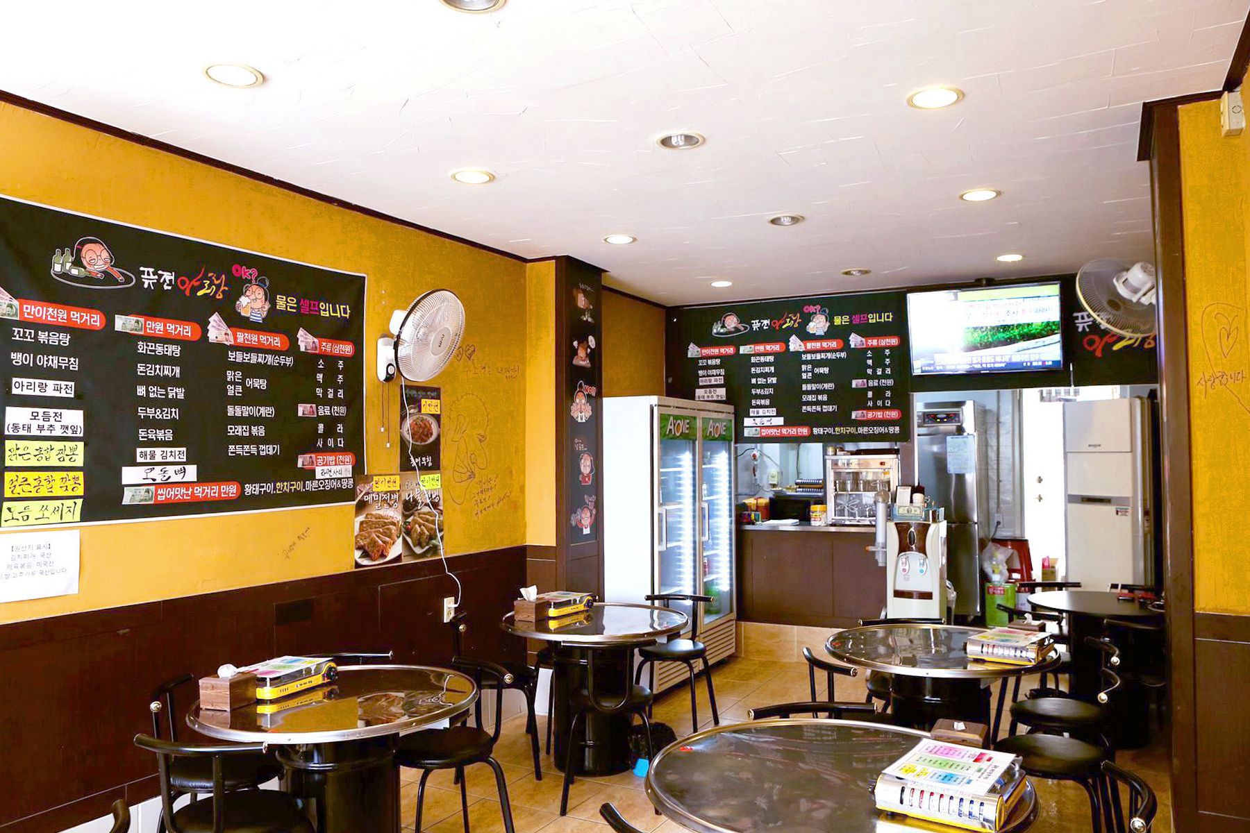 만원먹거리로는 화끈동태탕과 돈김치찌개, 뼈없는닭발, 두부&김치, 돈육볶음, 해물김치전,