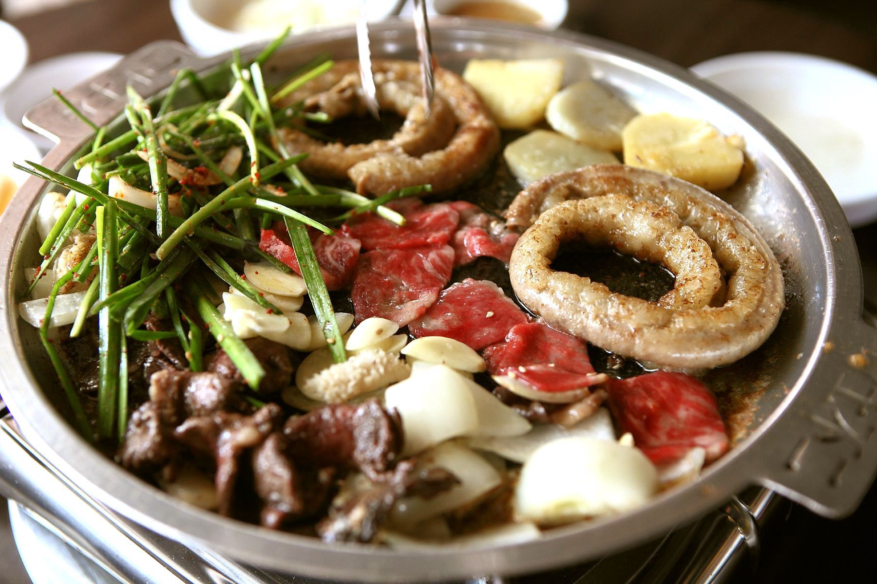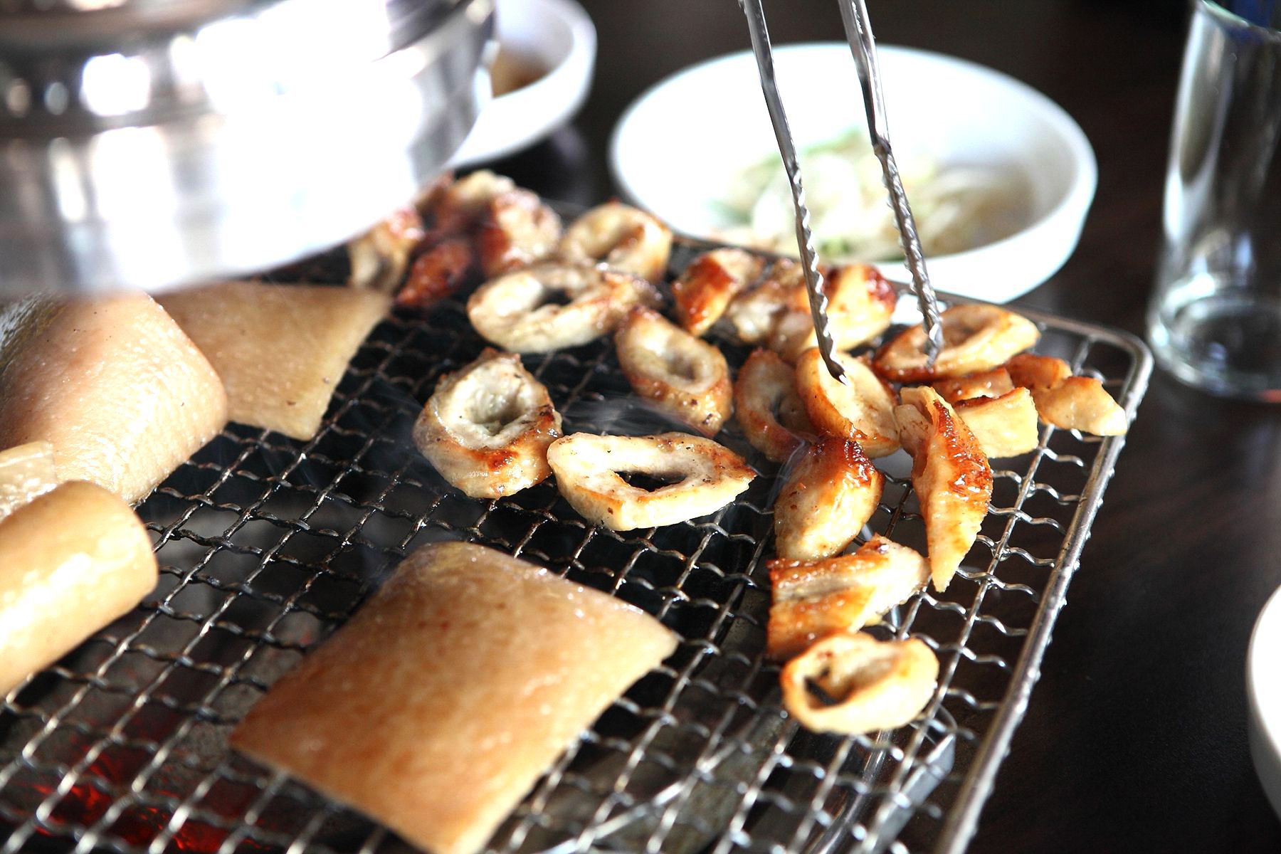 지글지글 맛있게 익고 잇는 곱창이랍니다.