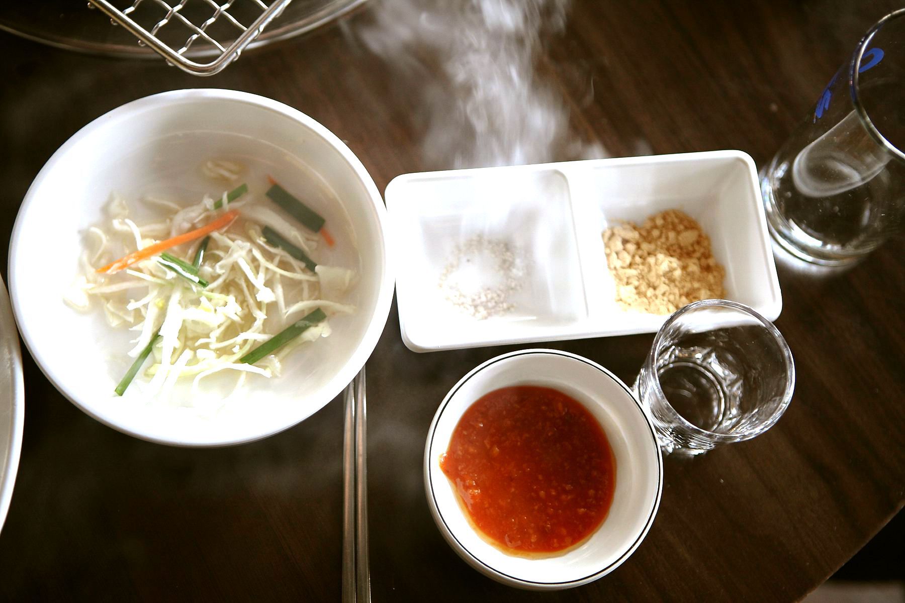 더 맛있게 막창을 즐기시려면 같이나오는 콩코물에 살짝 묻혀 소금에 찍어 드셔보세요!