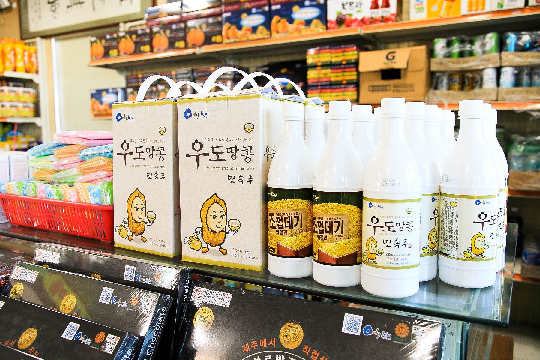 입구로 들어가면 제주초콜릿부터 향수, 민속주, 전통젓갈류 등의 제주특산품들을 저렴하게 팔고 있습니다.