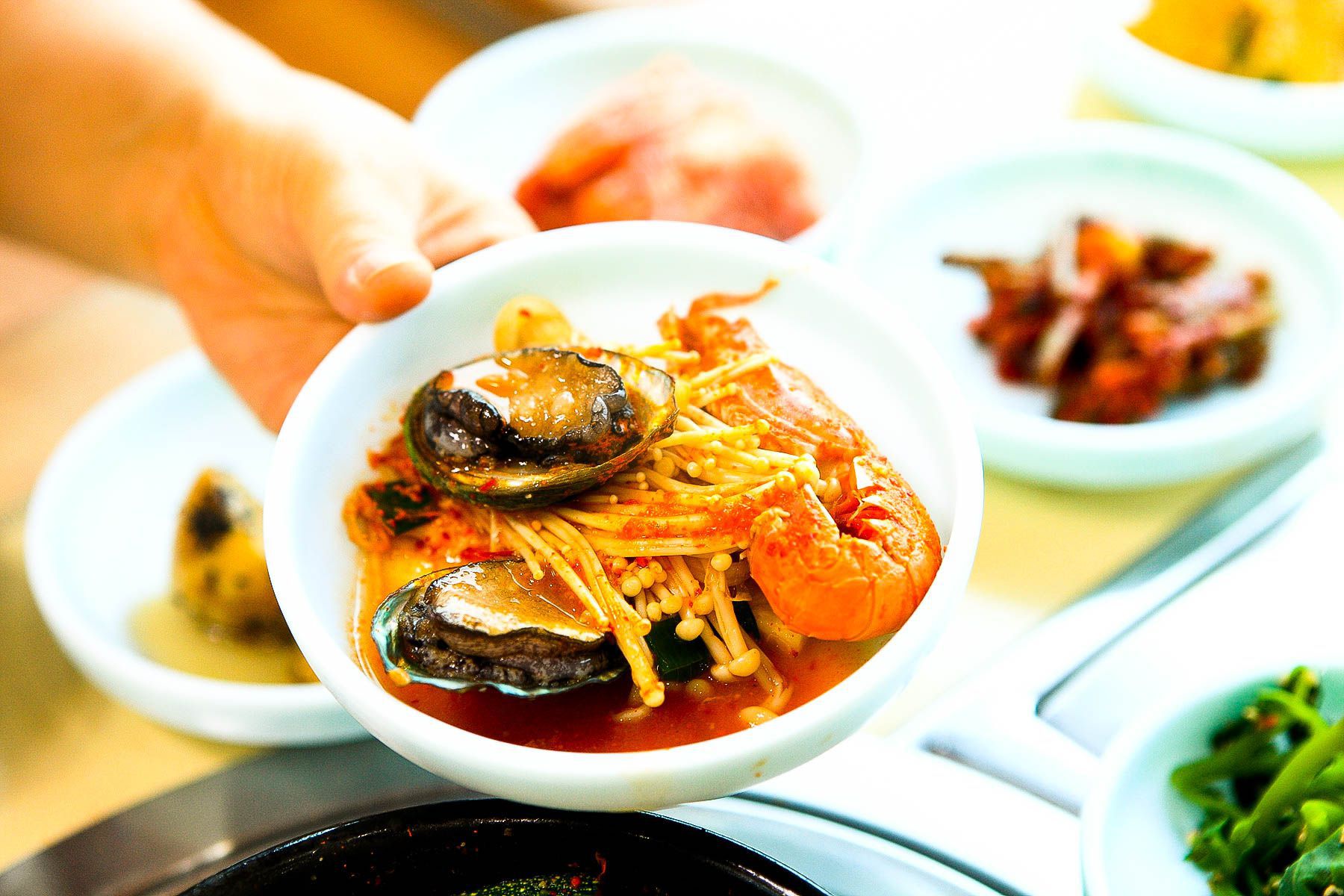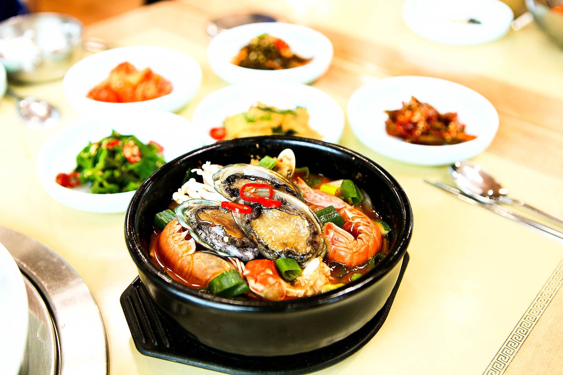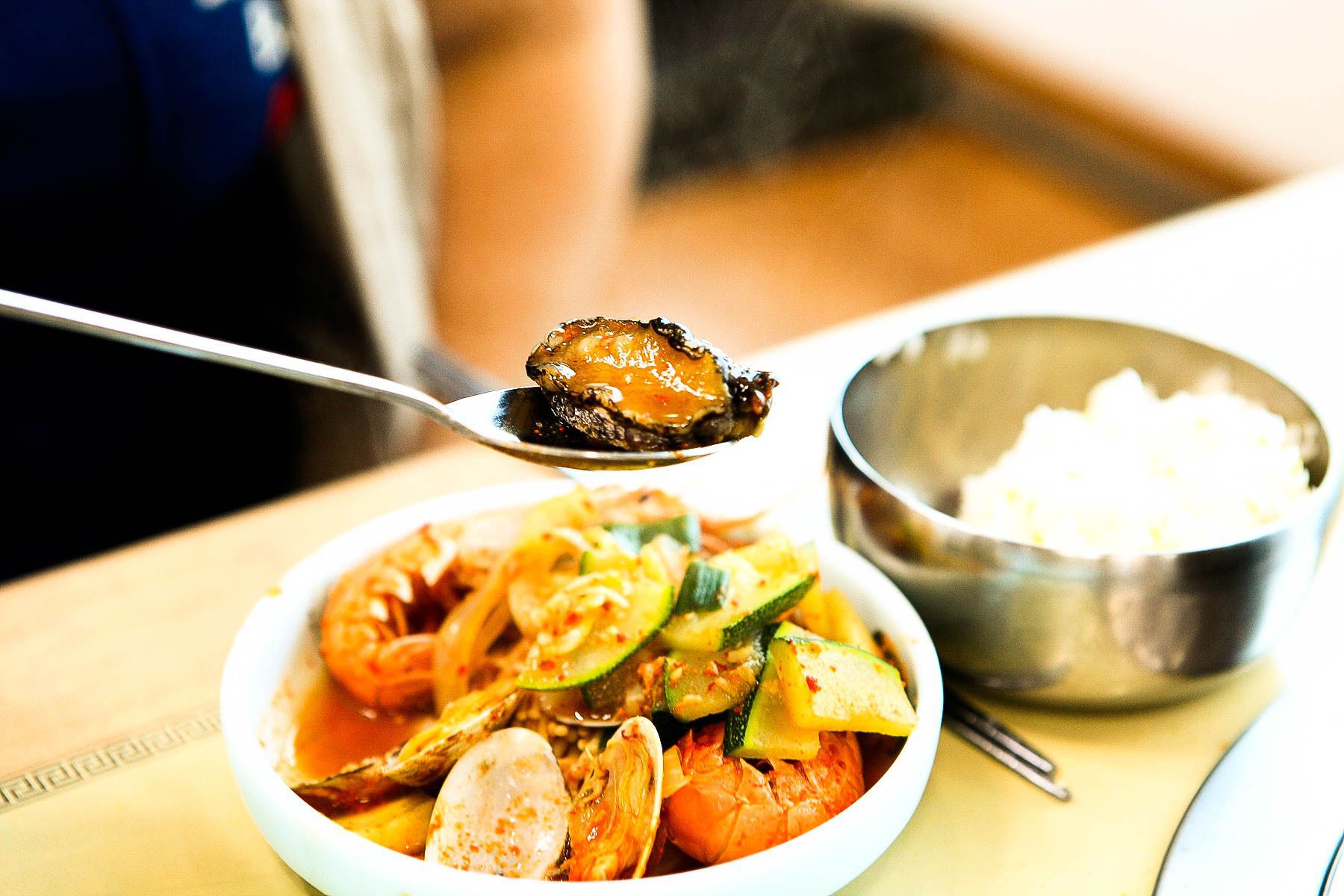 뚝배기 가득 갖은 싱싱한 해물들이 담겨 나온 전복뚝배기는 보기만 해도 군침이 돕니다.
