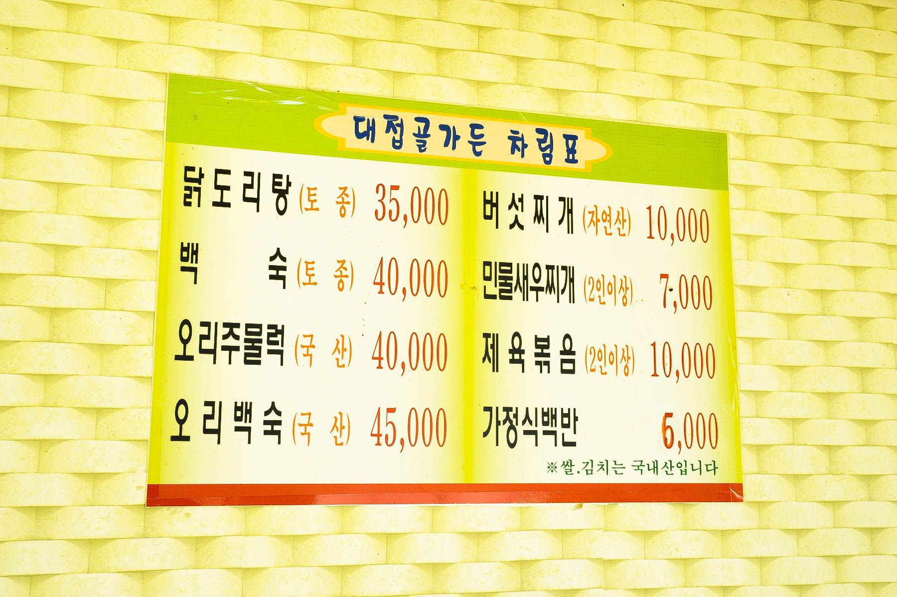 닭도리탕, 백숙, 오리주물럭, 오리백숙, 가정식백반, 민물새우찌개등