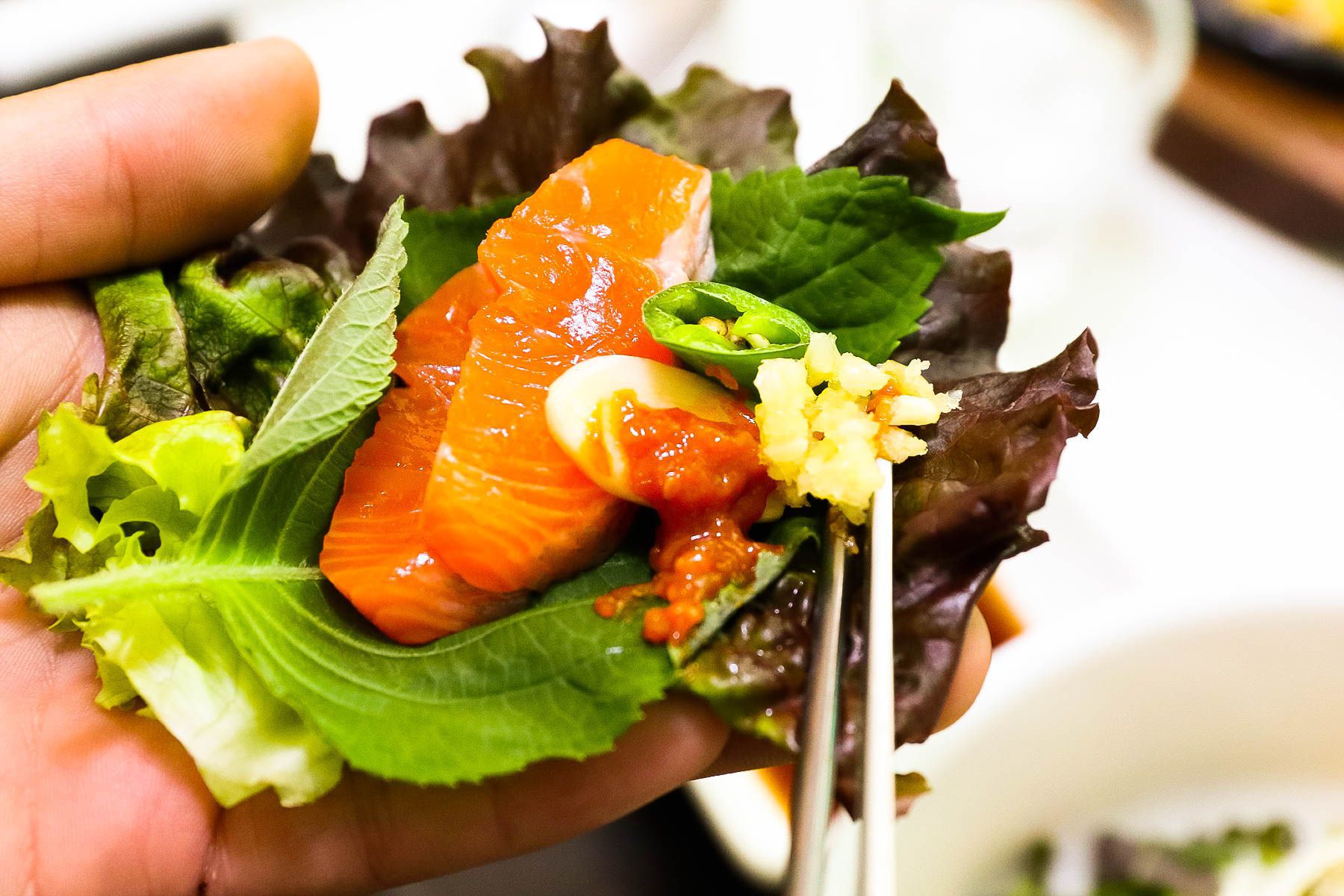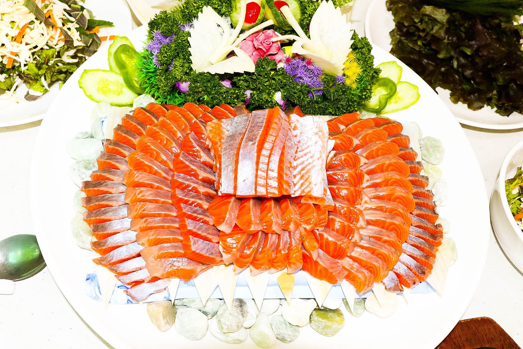 싱싱한 야채에 송어회를 싸서 드시면 입에서 살살 녹는답니다^^