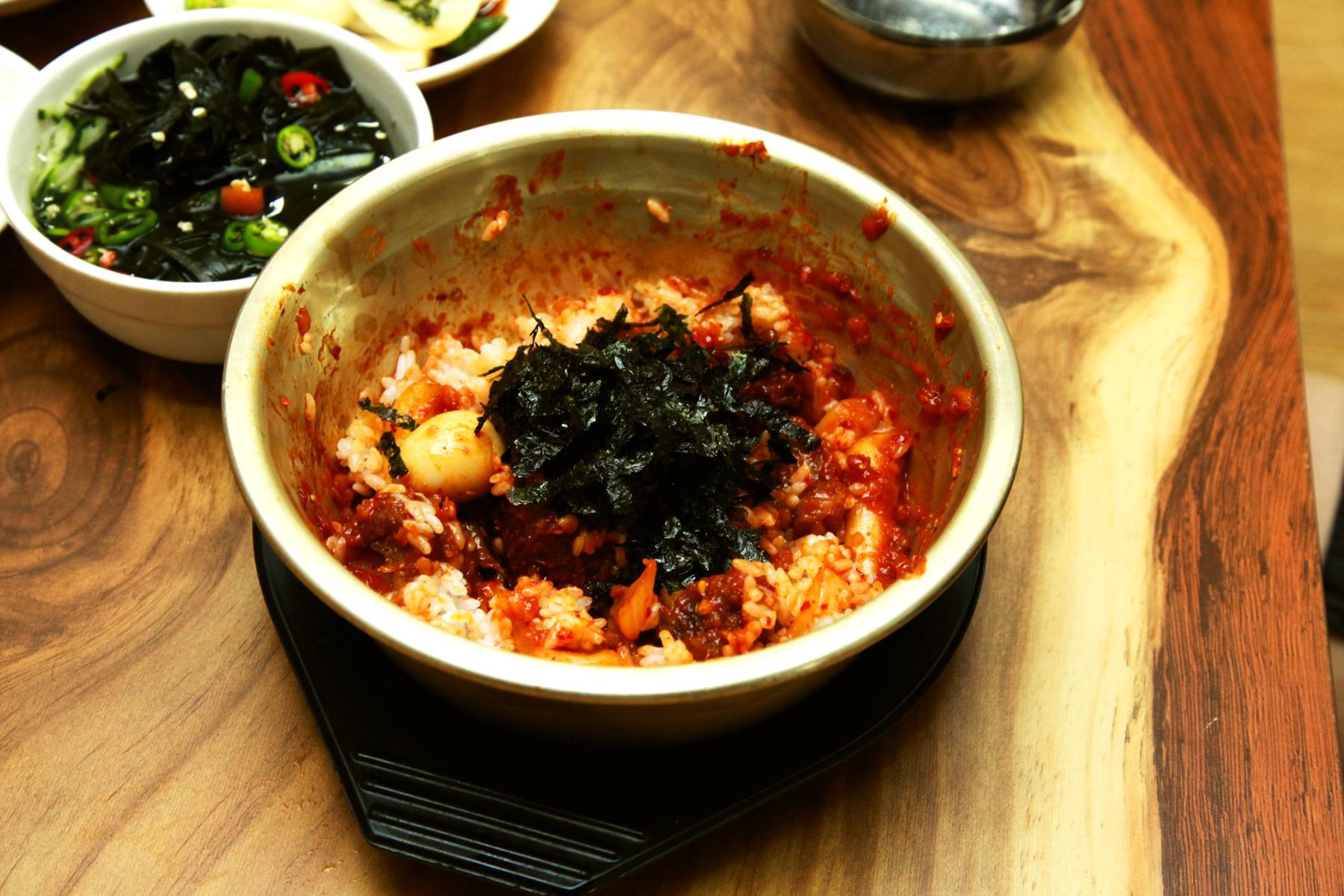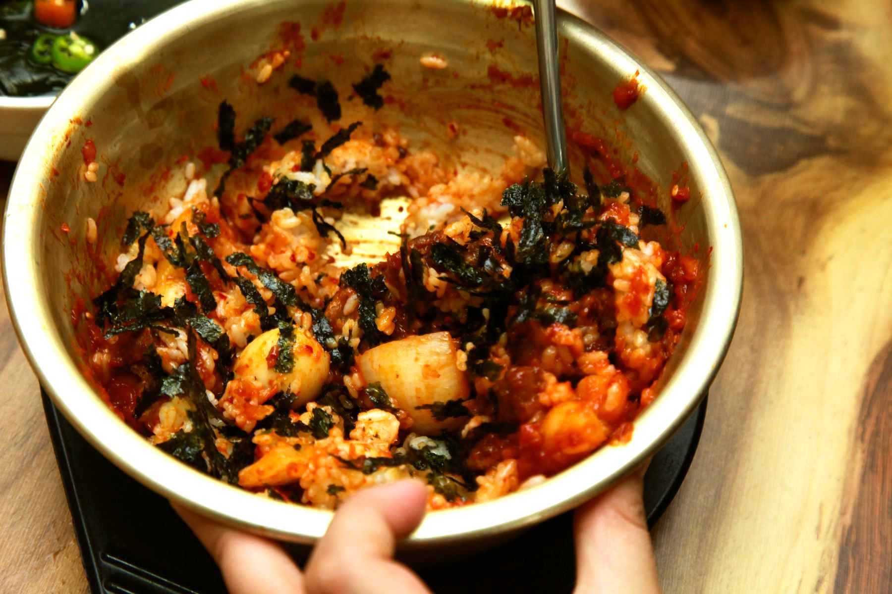 맛있는 갈비 다 드시고 남은 양념에 김가루 넣어서 밥을 쓱쓱
