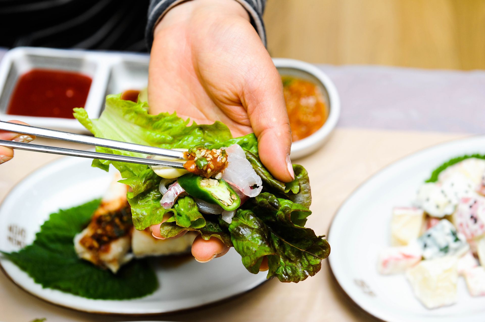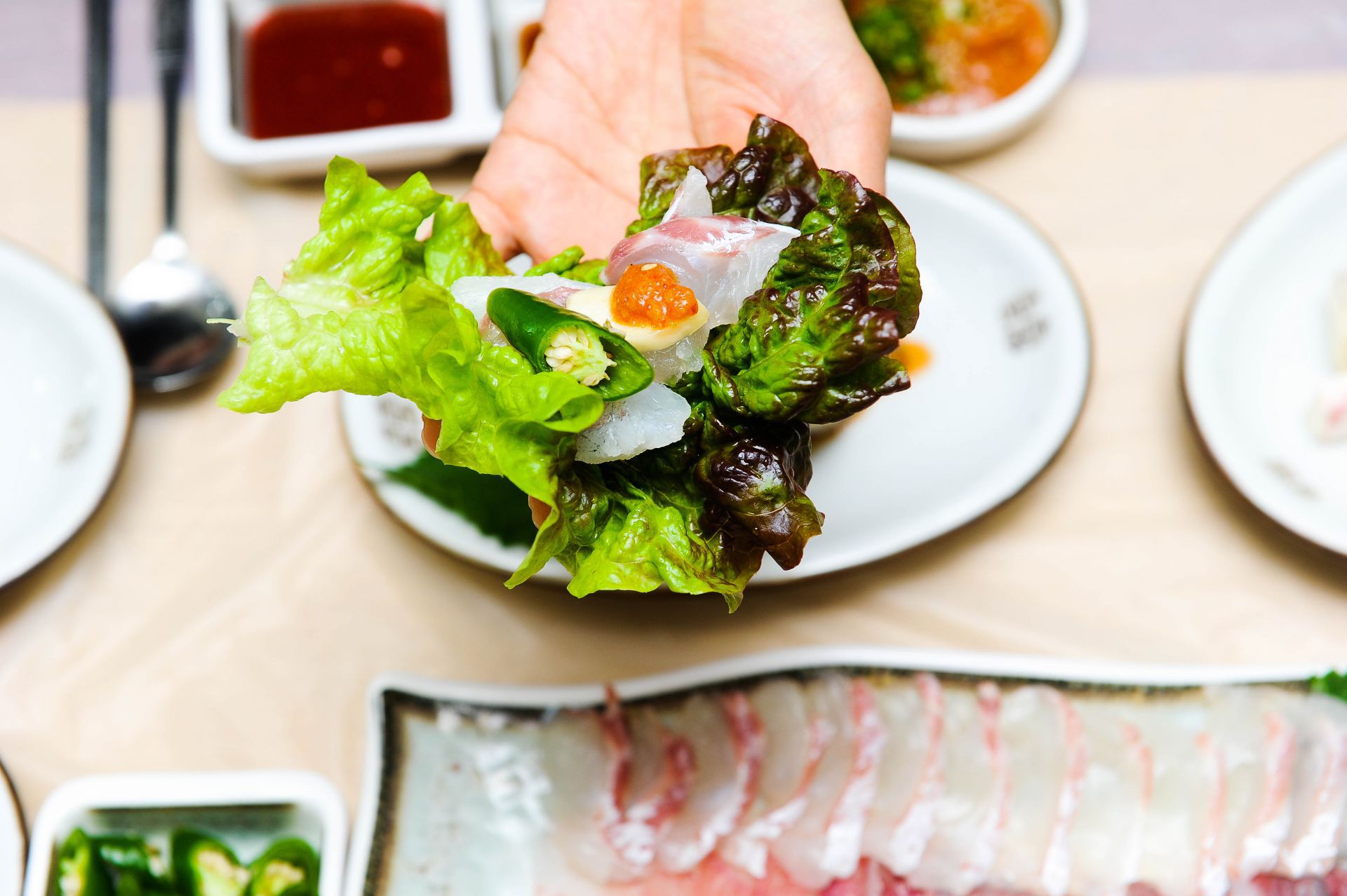 싱싱한 야채에 자연산 회를 한점 싸서 먹으면 입안이 저절로 즐거워 지는데요.