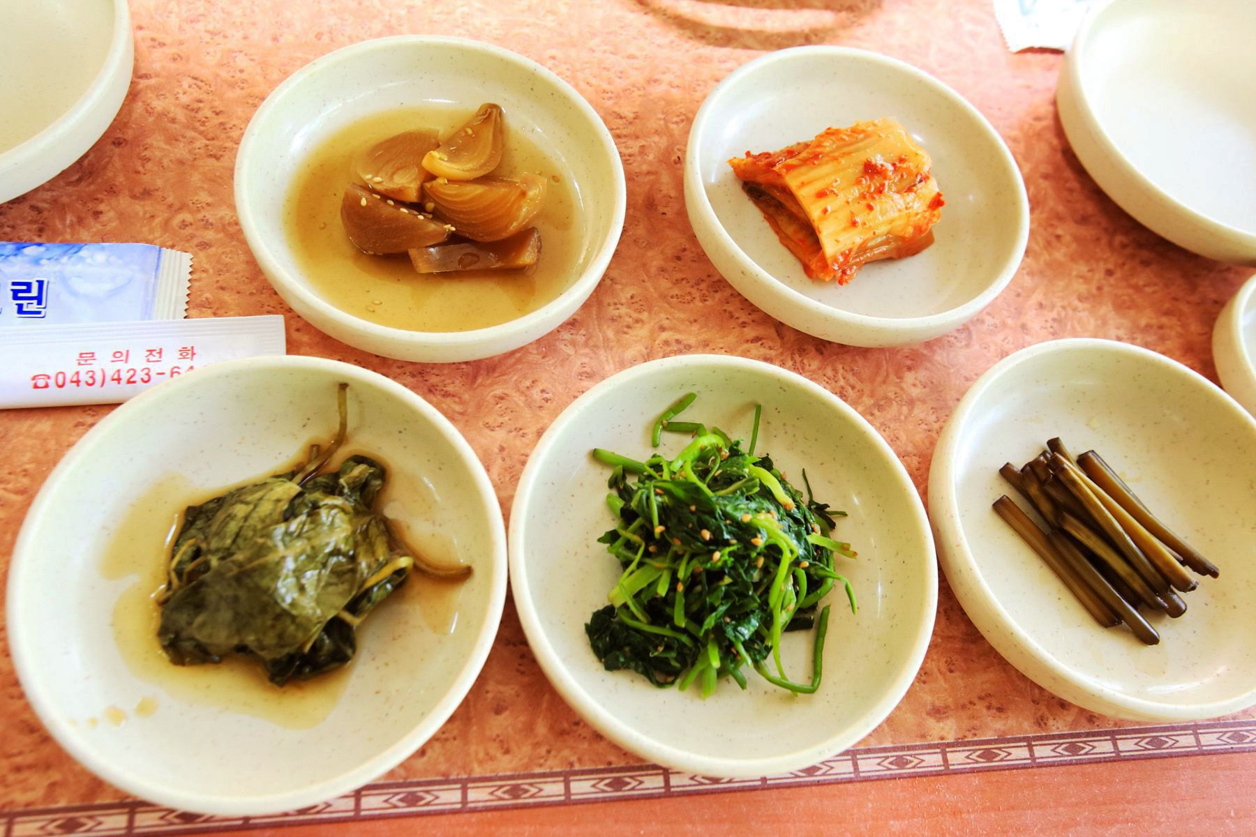 명희농장에서 제공하는 밑반찬입니다. 명희농장에서는 직접 채취한 제철 나물들로 밑반찬에 정성을 쏟아 손님상을 차리고 있는데요
